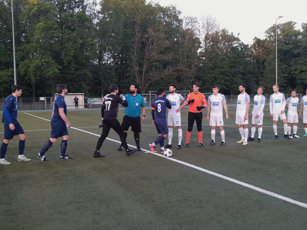 Als schon die Rödelheimer Fans bei einem Kopfball von Niklas Vogt nach einem Eckball den Torschrei auf den Lippen hatten, kratzte ein Abwehrspieler den Ball noch von der Torlinie. Der Club ließ hinten kaum was anbrennen, die Gastgeber hatten in der ersten Halbzeit nur zwei Torgelegenheiten, eine machte Gianni Gioia zunichte, als Tom Kaiser abzog und bei der anderen köpfte ein „Guder“ nach einem Eckball über das Tor. Nach dem Seitenwechsel begann Rödelheim furios und ging in Führung (49.). Wieder ein langer Ball, Adam Zazoua verlängerte geschickt mit dem Kopf in den Lauf von Enno Lang, der alleine auf das Tor der Gastgeber zusteuerte und dann den noch besser mit gelaufenen Niklas Vogt bediente, der nur noch einzuschieben brauchte. Jetzt legten die Gastgeber die Zurückhaltung ab, gingen wesentlich offensiver zu Werke und man sah, dass sie eigentlich gut Fußball spielen konnten. Der Club stand tief, überstand die ein oder andere knifflige Situation und hatte dann das Glück des Tüchtigen. Ein Freistoss durch Paskal Marinic aus der eigenen Hälfte landete in der 63. Minute im Strafraum der Gastgeber auf dem Hinterkopf von Jonas Franzisket und von dort unhaltbar ins eigene Tor. Danach gab es ein Spiel auf ein Tor, nämlich auf das vom Club.