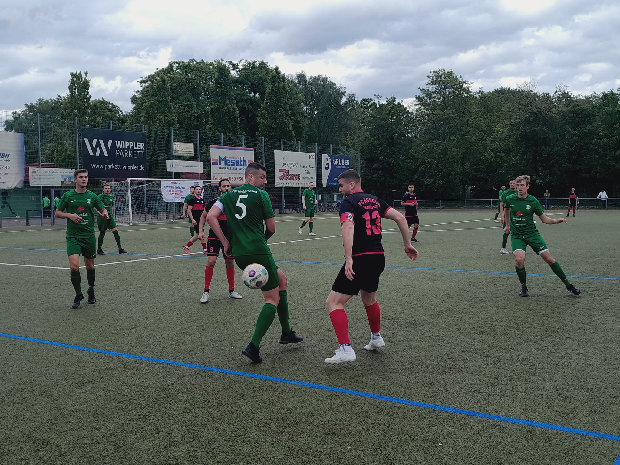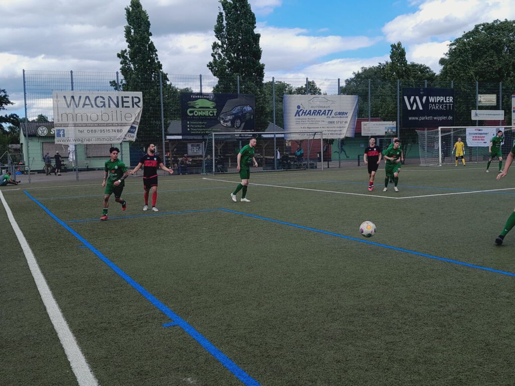 Die Gastgeber, seit einem halben Jahr „Dauer-Achter“, hatten gleich nach 40 Sekunden den ersten Torschuss durch Siegel zu verzeichnen. Kosova brachte nur 13 Akteure auf den Spielberichtsbogen, musste aufgrund der Roten Karte im Pokal-Halbfinale auf Soufian Taadou verzichten und hatte bei der 1:5-Niederlage gegen den FC Kalbach Spielmacher Leon Dashi suspendiert. Die erste Torchance der Gäste hatte Mateo Hyskay (10.). In Führung gingen die Gäste durch Torjäger Ibrahim Abbouz, der eine Flanke von Denis Memedi aus kurzer Distanz einschob (16.). Weitere Möglichkeiten durch Perparim Islami und Rejan Dervisholli blieben ungenutzt, sodass Heddernheim zum Ausgleich kam. Oliver Solarz setzte zu einem seiner unnachahmlichen Läufe mit Ball auf der linken Seite an, wurde dabei gefoult. Seine Hereingabe war aber schon Richtung Mitte unterwegs und so ließ der Schiedsrichter Vorteil laufen und Deniz Yatci traf zum 1:1 (29.). Kurz darauf erhielt Kosovas Asmir Hodzic wegen Meckerns erst die Gelbe Karte, machte so weiter und durfte sich draußen für zehn Minuten abkühlen (31.). Noch in Überzahl markierte der SV 07 die Führung. Yatcis Hereingabe schob Serdar Birhimeoglu zum 2:1 ein (41.). Dann waren die Gäste wieder komplett und profitierten von einem ruckartigen Einwurf der Gastgeber nach hinten, daraus entstand ein Ballverlust.