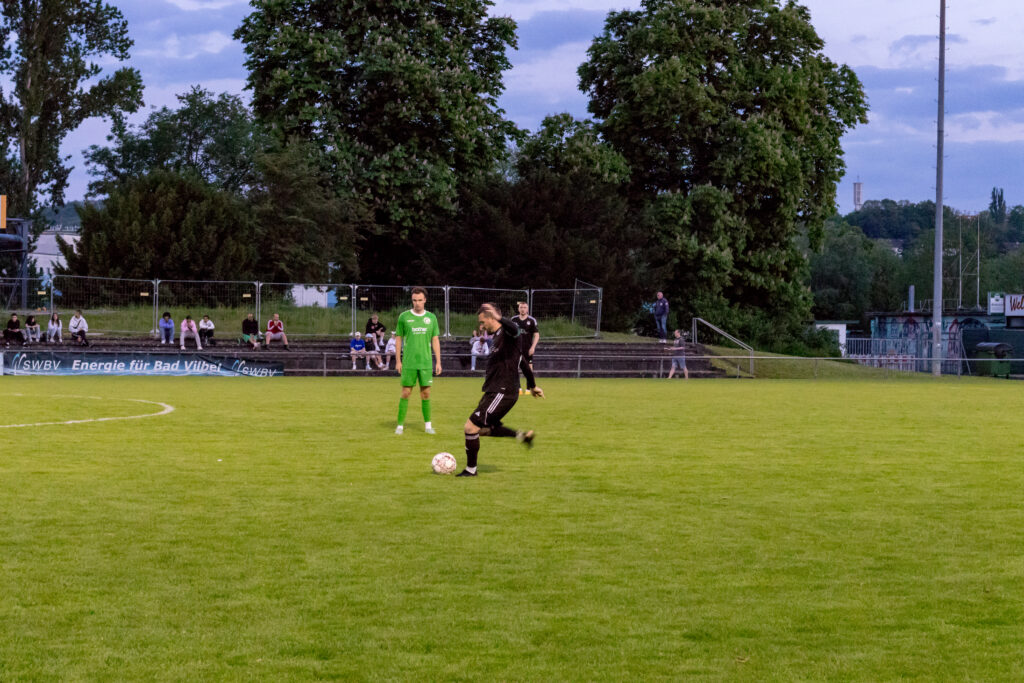 Vor 84 Zuschauern boten die abstiegsbedrohten Gastgeber eine starke Leistung und gingen gleich durch Malik Makey in Führung, der erst gegen den Pfosten schoss und dann den Abpraller selbst verwertete (3.). Bad Vilbel spielte dominant und ließ nur wenige Torchancen der Gäste zu. Im Tor spielte zum zweiten Mal nach seiner langen Verletzung Max Ehrig, der seinen Kasten sauber hielt und Souveränität ausstrahlte.