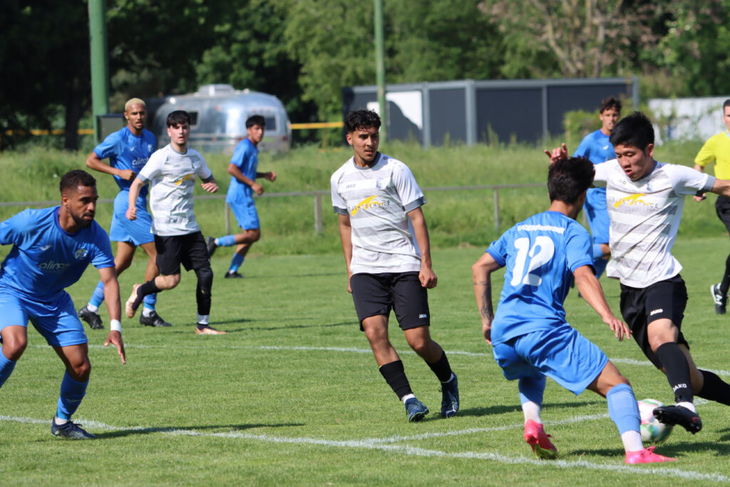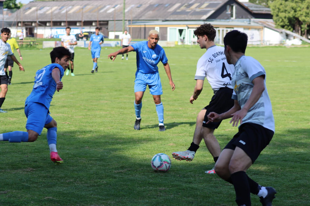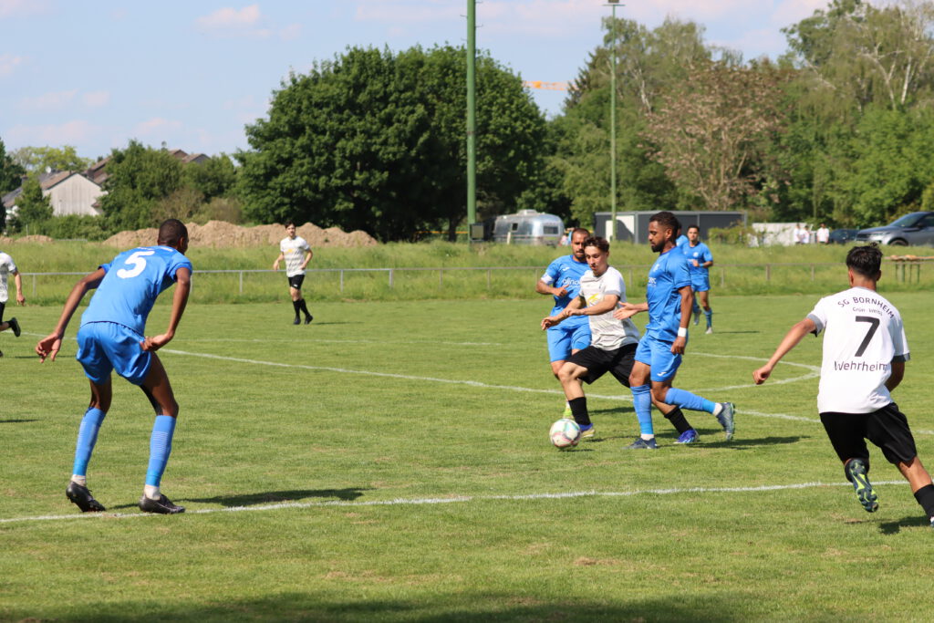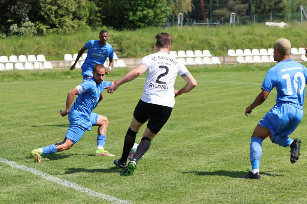 Die ersten 30 Minuten des Spiels konnten die Gäste aus Bornheim noch ausgeglichen gestalten, doch in der 27.Minute schlug der Ball zum ersten Mal im eigenen Gehäuse ein. Während einer kurzzeitigen Unterzahl aufgrund einer Behandlung eines Spielers landete ein eigener Einwurf auf Umwegen bei Jose Roberto da Silva Olimpio, der den Ball aus gut 35 Minuten ins Tor schoss und die 1:0-Führung für die Gastgeber erzielte. Dann folgten noch vor der Pause zwei Tore von Gabriel Maximiliano Campora Martinez zur 3:0-Pausenführung, beim 2:0 in der 38.Minute war er im Nachschuss erfolgreich, nachdem ein Freistoß von der Latte abprallte, und beim 3:0 in der 45.Minute profitierte er von einem Fehler von SG-Torwart Gianluca Colombo, der einen Ball fallen ließ.