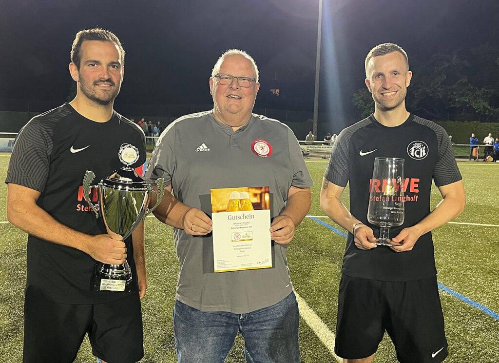 In der 66.Minute gab es dann eine Spielunterbrechung, die vom Linienrichter angezeigt wurde. Der Schiedsrichter rief die Kapitäne zu sich, entschied sich dann, das Spiel erst einmal zu unterbrechen, und ging dann mit seinem Team in die Kabine, um sich zu beraten. Wie uns Manni Meyer, Mitglied der Sportlichen Leitung des FC Kalbach sagte, habe ihm der Schiedsrichter auf Nachfrage mitgeteilt, ein Zuschauer hätte wohl dem Linienrichter zugerufen: „Du Bastard, ich bringe Dich um“. Dieser eine Zuschauer hat die super Stimmung bei diesem Endspiel auf und neben dem Platz auf einen Schlag kaputt gemacht, so etwas gehört nicht auf einen Fußballplatz. Nach einigen Beratungen und ca. 25 Minuten Pause entschied das Schiedsrichtergespann, das Spiel wieder anzupfeifen.