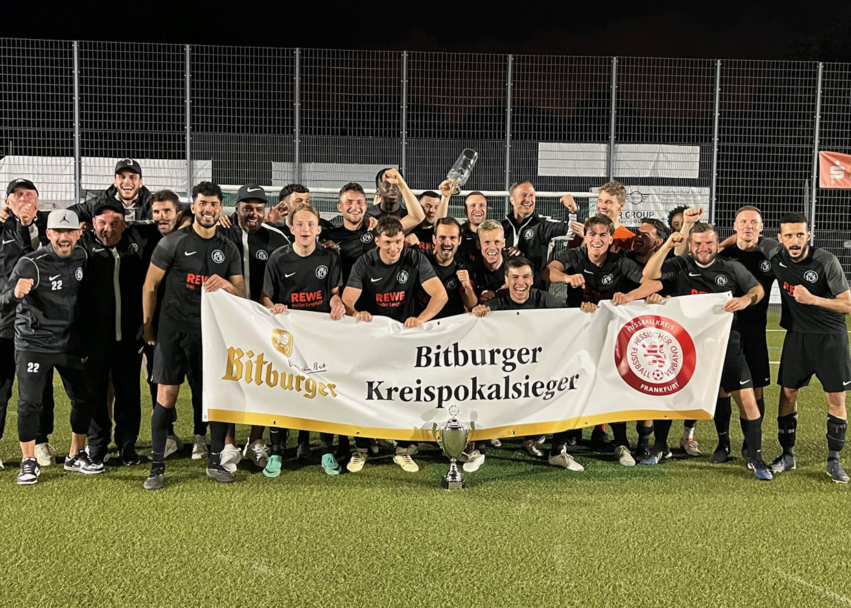 Im Endspiel des Kreispokals Frankfurt der Saison 2023/24 standen sich gegenüber der SC Riedberg aus der Kreisliga B, der in den Vorrunden den Gruppenligisten FC Tempo und den Titelverteidiger, Verbandsligist SG Bornheim, aus dem Pokal geworfen hat, und der Gruppenligist FC Kalbach, der in dieser Saison noch Chancen auf den Aufstiegsrelegationsplatz hat. Die Riedberger konnten am vergangenen Wochenende den Aufstieg in die Kreisliga A feiern und konnten sich jetzt voll auf den Pokal konzentrieren. 630 Zuschauer waren an der Heimstätte des SV Viktoria Preußen anwesend, über 400 kamen aus Riedberg, dem direkten Nachbarverein vom FC Kalbach.