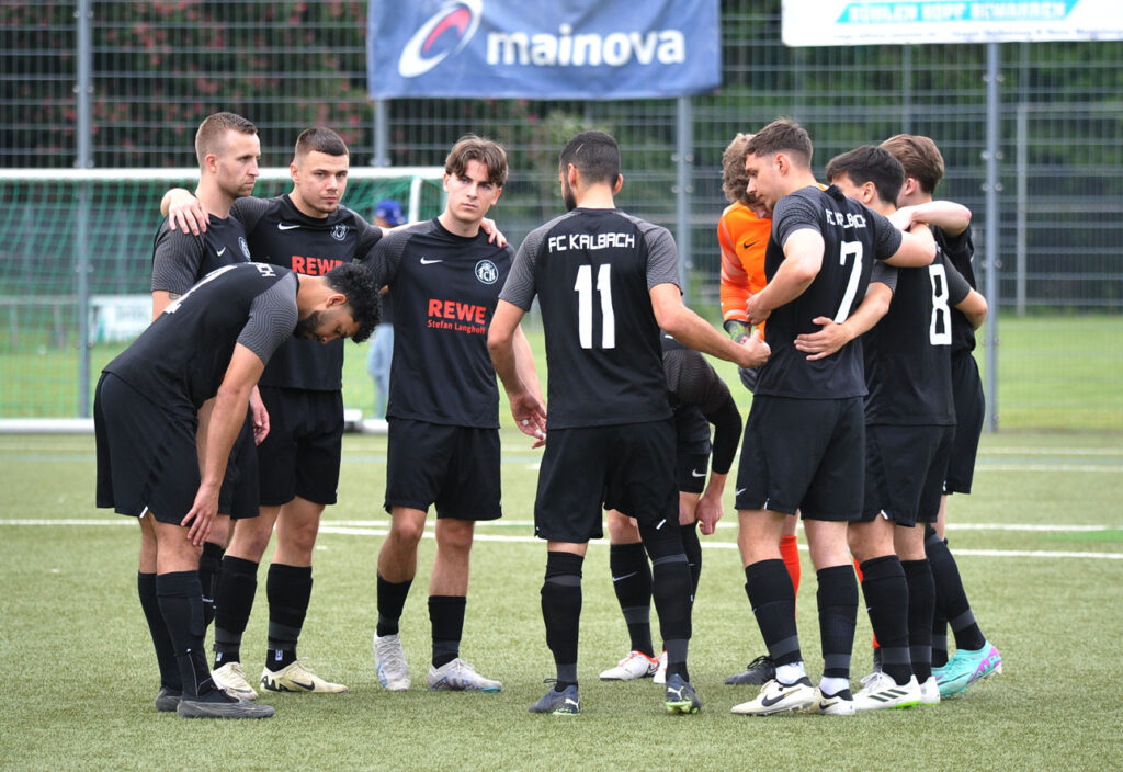 In der 45.Minute dann ein Angriff der Kalbacher über die rechte Seite, Aleksej Radulaski spielte den Ball flach in die Mitte und Bennet Batton kam vor dem Gegenspieler an den Ball und spitzelte ihn zum Ausgleich ins Tor. Noch vor der Halbzeit hatte der Favorit gegen die jetzt verunsicherten Riedberger zwei Chancen, Moritz Uppenkamps Schuss ging knapp neben das Tor und Ricardo Harrabi traf mit einem Schuss aus 18 Metern nur die Querlatte. Mit dem 1:1 ging es dann in die Pause.