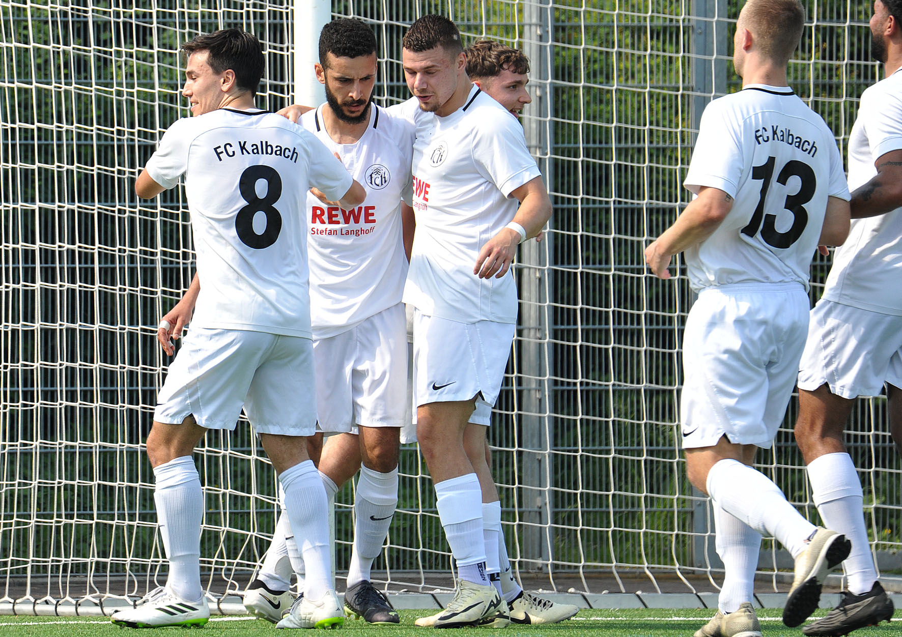 Das schöne Wetter und der spielfreie Tag in der Verbandsliga lockten 390 Zuschauer nach Kalbach, wo der heimische FC gegen den Tabellenzweiten FC Neu-Anspach seine Aufstiegschancen untermauern wollte. Zu Beginn des Spiels waren beide Mannschaften darauf bedacht, keine Fehler zu machen, darunter litt das Offensivspiel. Die erste nennenswerte Chance verzeichnete Neu-Anspach in der 9.Minute, Bilal El Makrini tauchte frei vor Torwart Fabian Lanthaler auf, aus spitzem Winkel schoss er nur knapp am langen Eck vorbei. Nach und nach bekam Kalbach das Spiel besser in den Griff und in der 30.Minute konnte ein Neu-Anspacher gerade noch auf der Linie klären. Nach einer Eckenvariante in der 33.Minute sprang einem Gäste-Spieler der Ball im Gewühl an die Hand und der Schiedsrichter entschied sofort auf Elfmeter, Achraf Gara Ali verlud den Torhüter und erzielte das 1:0 (34.).