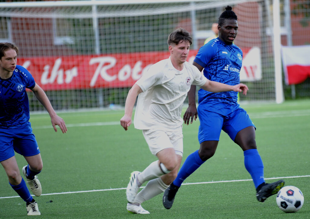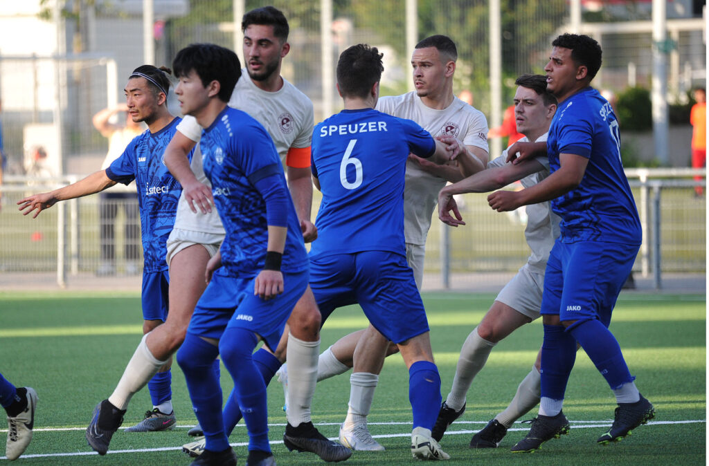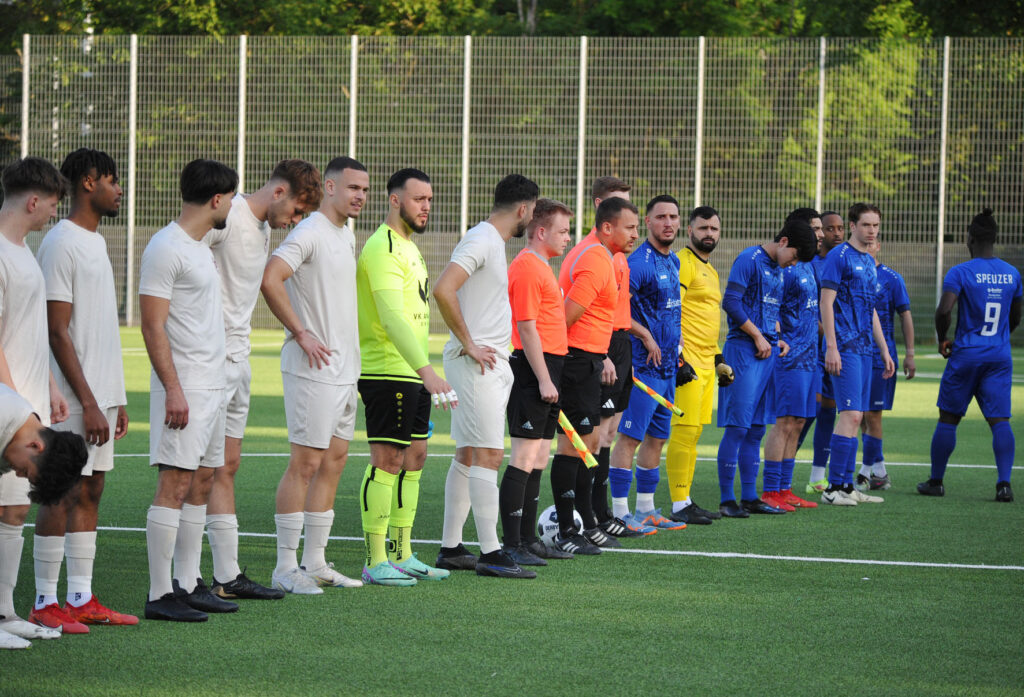 Vor dem Spiel erwartete RW-Trainer Ibo Cigdem einen motivierten Gegner, der alles daransetzen würde, seine Mannschaft ebenfalls mit in die Gruppenliga herunterzuziehen. Die ersten Minuten des Spiels bestätigten diese Erwartung, denn in den ersten 10 Minuten hielten die Speuzer dagegen und kamen auch zu zwei Chancen. In der 3.Minute war es Sena Tetsumoto, der aus 10 Minuten nach einer abgewehrten Ecke zu hoch zielte, und in der 9.Minute zwang Ahmed Hatim Mohamed Ahmed den RW-Torwart Dusan Zbiljic zu einer Parade, der Keeper konnte den aufsetzenden Kopfball gerade noch zur Ecke parieren. Doch in der 12.Minute dann die Führung für die Rot-Weissen, nach einem Gewühl im Strafraum der Gäste wurde der Ball zurückgelegt auf Luka Cabraja, der ihn aus 18 Metern vehement zum 1:0 ins Tor jagte. Das war die Erlösung für die Gastgeber.
