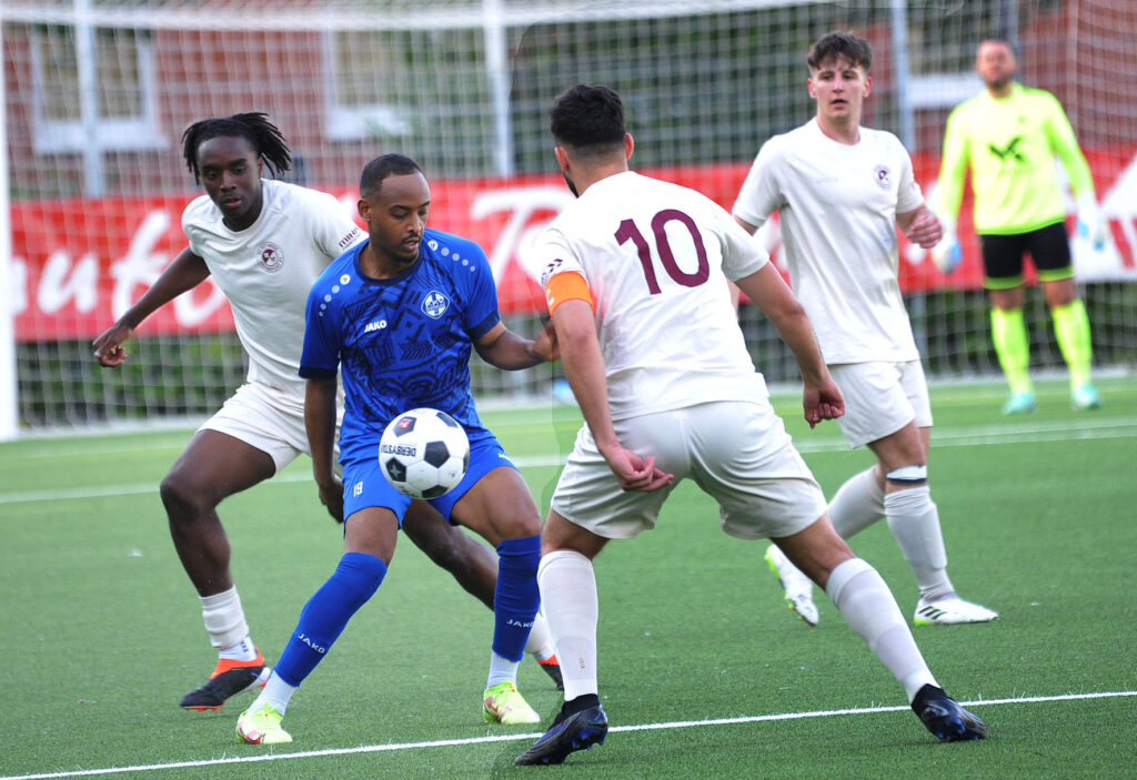 Um die Halbzeitpause herum kam dann die Zeit von Patrick Alper Gürser, in der 42.Minute nahm er eine Hereingabe von rechts an und versenkte dann den Ball aus 10 Metern im gegnerischen Tor. Direkt nach der Halbzeit (46.Minute) wurde Gürser im gegnerischen Strafraum freigespielt, allein vor dem Tor ließ er dem FFV-Torwart keine Chance und vollendete zum 7:1, ein weiterer Nackenschlag kurz nach der Pause für die Sportfreunde. Und nur 5 Minuten später wurde Luka Cabraja im Gäste-Strafraum gelegt, Gürser schnappte sich den Ball und verwandelte den Elfmeter zum 8:1. Die Gastgeber ließen nicht nach, da bei einem möglichen ausgeglichen gestalteten Direktvergleich gegen den nächsten Gegner, die S.K.G Rodgau, auch das Torverhältnis entscheidend sein könnte. Und so kamen die Rot-Weissen noch zu zwei weiteren Toren, in der 73.Minute war Dino-Samuel Kurbegovic mit einem Kopfball zum 9:1 erfolgreich, das zweistellige Resultat stellte dann Ayoub Lahchaychi sicher, der den Ball nach einer Flanke zum 10:1 einschob.