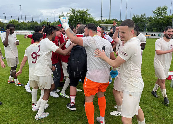 Trainer Ibo Cigdem, der sich nach dem Spiel erst einmal eine Bierdusche von den zahlreichen RW-Fans abholte: „das Spiel passt zu unserer Saison, aber wir haben es geschafft, diese miserable Saison oder eher nicht gute Saison umgedreht zu haben. Ein Riesenkompliment an die Mannschaft, an den Charakter dieser Mannschaft, die so viele Nackenschläge unter diesen Umständen, dass sie zusammengewürfelt ist, weggesteckt hat. Ich glaube, das Spiel hat alles mitgegeben, was die Saison hatte, unnötige Fehler, blöde Fehler, in der letzten Sekunde das Spiel gedreht, du siehst ja die Einstellung der Mannschaft, wie sie hier kämpft, und deswegen haben wir es geschafft, abhaken und gucken, dass wir nächstes Jahr sowas nicht nochmal machen.“