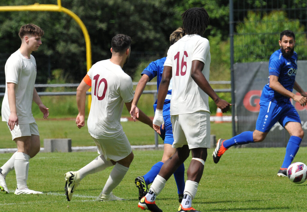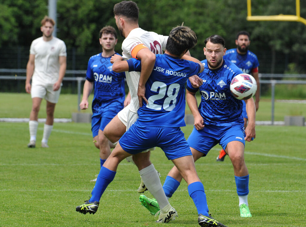 Doch bereits in der 5 Minute der erste Rückschlag für Rot-Weiss, der Rodgauer Petrit Hulaj wurde mit einem langen Pass auf der linken Seite auf die Reise geschickt, kam an einem Gegenspieler vorbei und zog aus spitzem Winkel ab. Den ersten Schuss konnte Dusan Zbiljic im RW-Tor noch parieren, doch der Abpraller landete wieder bei Hulaj, diesmal war er erfolgreicher und schoss das 1:0 für die Gastgeber. In der 19.Minute dann die große Ausgleichschance, Ryunosuke Aso kam frei vor dem Torwart zum Schluss, doch der Rodgauer Torwart Behnan Koeseoglu konnte mit einer Fußabwehr retten, auf Umwegen kam der Ball dann zu Luka Cabraja, der in der 20.Minute sein Herz in die Hände nahm und aus 20 Metern abzog. Der Ball landete unhaltbar zum 1:1 im Netz.