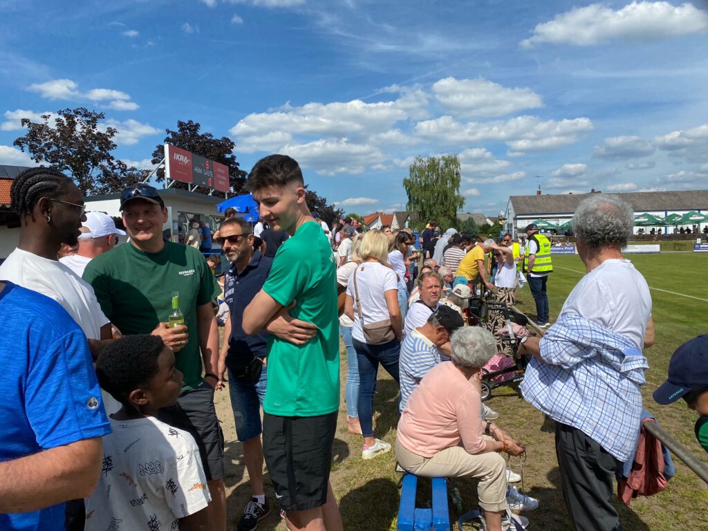 Das Spiel wurde gar nicht mehr angepfiffen und der VfR Groß-Gerau steigt nach diesem Sieg in die Verbandsliga Süd auf, während der FC Kalbach für ein weiteres Jahr Gruppenliga Frankfurt West planen muss. Manni Meyer, Mitglied der Sportlichen Leitung des FC Kalbach, nach dem Spiel: „Ganz einfach, wir haben in der ersten Halbzeit den Sack nicht zumachen können, wir waren klar die bessere Mannschaft, haben das Spiel bestimmt, und kriegen kurz nach der Pause das 1:1, abgefälschter Schuss, und dann gleich das 2.1, das hat wehgetan. Aber wir sind eine Mentalitätsmannschaft, wir kommen zurück, auch eben in der 90.+3, dass der nicht reingeht, den Eckball, den trainieren wir im Training, und der schießt dem Tormann aufs Knie und der Ball geht raus. Das wars, fertig aus, gute Saison, abhaken, jetzt Luft kriegen für die neue Runde, neu anfangen, und mehr kann man dazu nicht sagen. Ich bin enttäuscht, aber wer nach so einem Spiel nicht enttäuscht ist, das gibt’s nicht.“