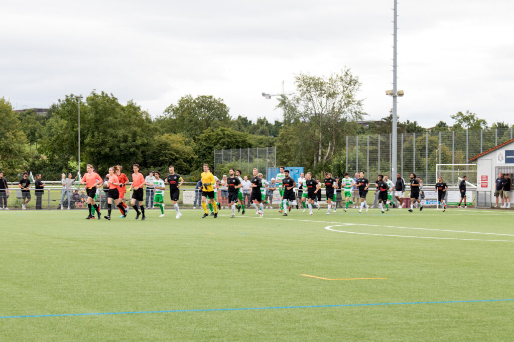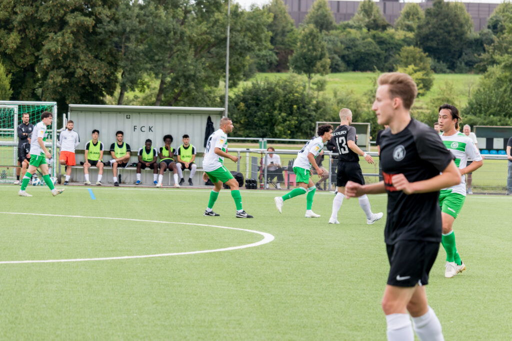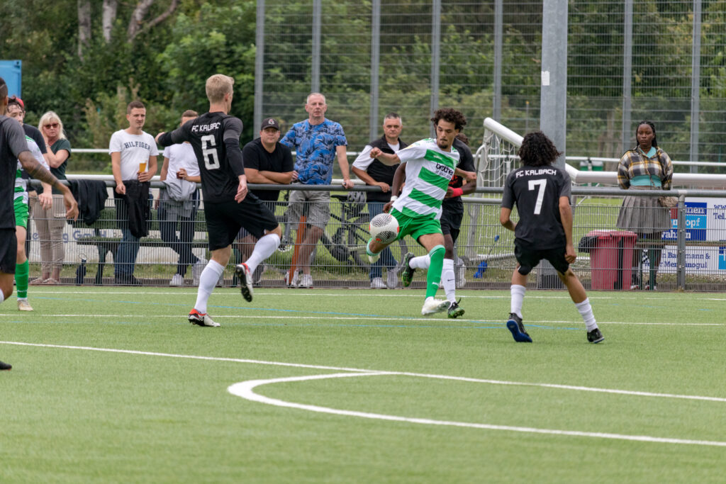 Der FC Kalbach, der am Mittwoch im Hessenpokal mit 2:5 an Bayern Alzenau gescheitert war, empfing den neu zusammengestellten FV Bad Vilbel, der mittlerweile von Alessandro Cavalera trainiert wird. Die Gäste kamen besser in die Partie, auch wenn beiden Mannschaften die Nervosität des ersten Spiels in der neuen Saison anzumerken war. Nach einem Freistoß von Maarten Klöppel erzielte Aiki Koyama per Kopf das 1:0 für die Gäste, das die Kalbacher schockte. Trotz des schnellen 1:1 in der 18.Minute, das Ihab Suleiman aus dem Gewühl heraus erzielte, merkte man nach Aussagen von Manni Meyer, Mitglied der Sportlichen Leitung des FC Kalbach, den Gastgebern eine Unsicherheit an.