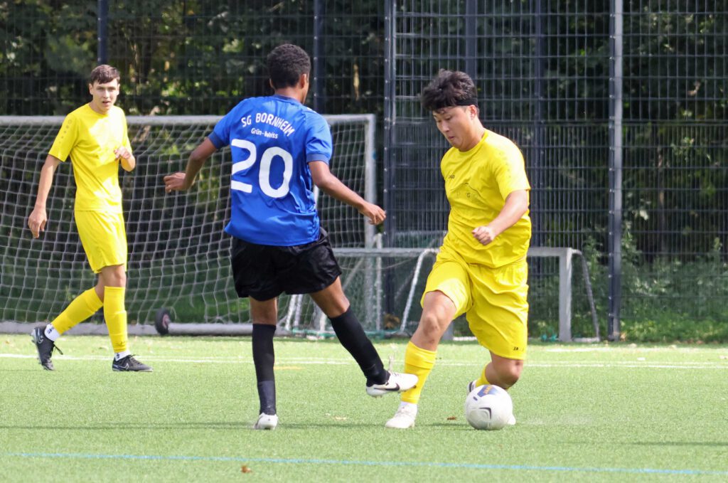 Ein unnötiger Ballverlust von Noah Heddesheimer ließ in der 35. Minute die Partie kippen. Bornheim spielte schnell in die Spitze und erzielte den Anschlusstreffer durch Yeman Kelati. Der Club spielte nun oft zu behäbig nach vorn und versäumte ein ums andere Mal den Pass in die Spitze, die Gäste wurden gefährlicher. Nach dem Seitenwechsel ließen sich die Rödelheimer zu sehr hinten reindrängen. Man wurde nur einmal richtig gefährlich als sich Osman stark über rechts durchsetzte. Borja Rodriguez Roiz, der ansonsten eine solide Partie im Mittelfeld lieferte, schaffte es aus kürzester Distanz den Ball über die Latte zu schießen. Nach 55 Minuten kam Gianni Gioia nach einem Chipball in den 16er nicht schnell genug aus seinem Kasten und musste machtlos zusehen wie der Ball von Emmanuel Junior Opoku zum Ausgleich ins Tor gespitzelt wurde.