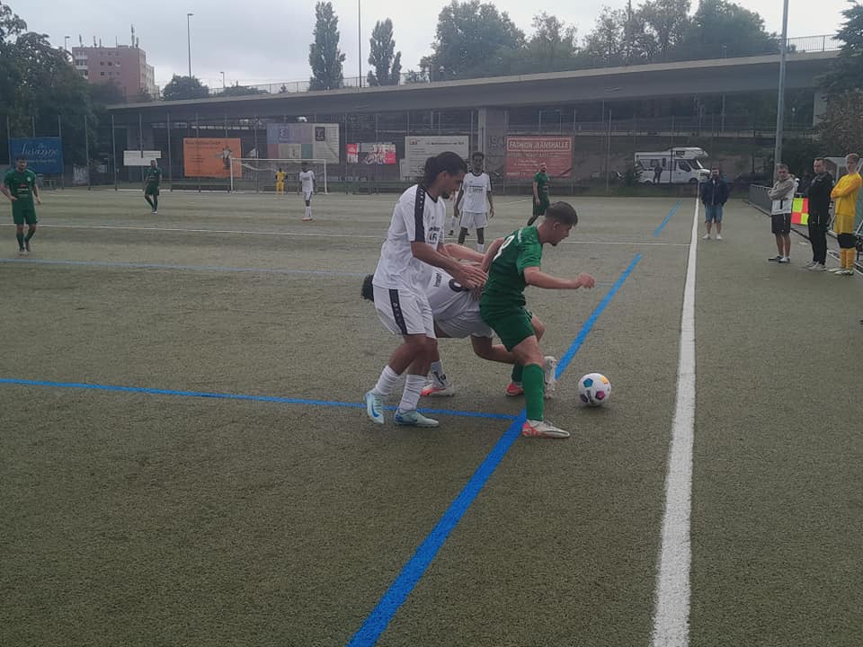 „Wir haben wenig zugelassen, standen sicher“, merkte Berggold an. Viktoria Preußen kam mit Noel Yosef (11.) und Sedek Bangura (20.) zu zwei Abschlüssen. Nach dem Seitenwechsel war dann die Heddernheimer Abwehr wieder unsortiert. Isaiah Adu wurde auf dem linken Flügel angespielt und ließ die Defensive der Grünen mal wieder nicht gut aussehen, traf flach ins rechte Eck zur Führung der Preußen (48.). Die Gäste setzten nach und trafen mit dem agilen Sedek Bangura die Latte (58.). Heddernheim machte Druck, brachte den lange verletzten Luka Filip Brnas für den „Büffel“ Birhimeoglu. Es fehlte aber auch das Spielglück, als sich Kapitän Deniz Yatci dynamisch durchsetzte, aber den Ball gegen den Pfosten knallte (76.). Nach einem Eckball von Tomislav Cudina stieg dann Abwehrspieler Niels Gerbig am höchsten und köpfte wuchtig zum 1:1 ein (81.).