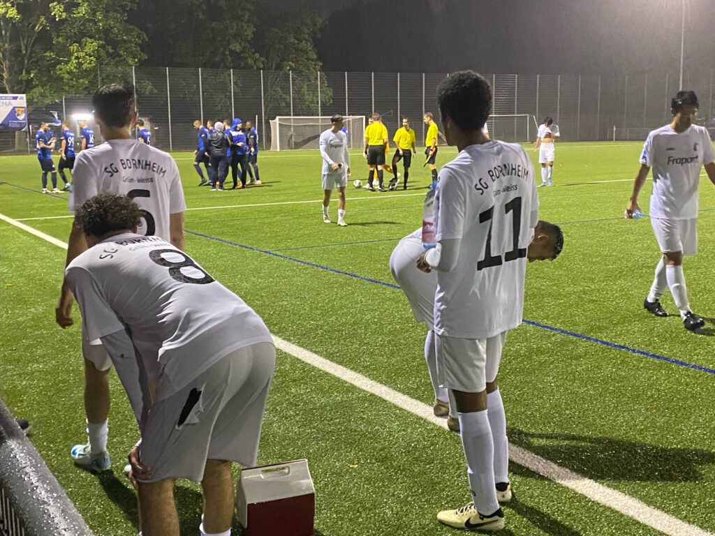Aufgrund der Ligazugehörigkeit war der Verbandsligist SG Bornheim Favorit beim Gruppenligisten FC Tempo, der aber das bessere Momentum hatte nach zwei Siegen in Serie in der Gruppenliga, während die Bornheimer mit 6 Niederlagen am Stück in die Woogarena reisten. Hinzu kam, dass den Gästen 17 Spieler fehlten, gegenüber dem letzten Spiel in der Verbandsliga musste Trainer Maik Rudolf sechsmal wechseln und brachte auch 2 Spieler aus der A-Jugend und einen Spieler aus der 1b-Mannschaft mit. Leider spielte der Wettergott nicht mit, es gab Dauerregen während des gesamten Spiels.