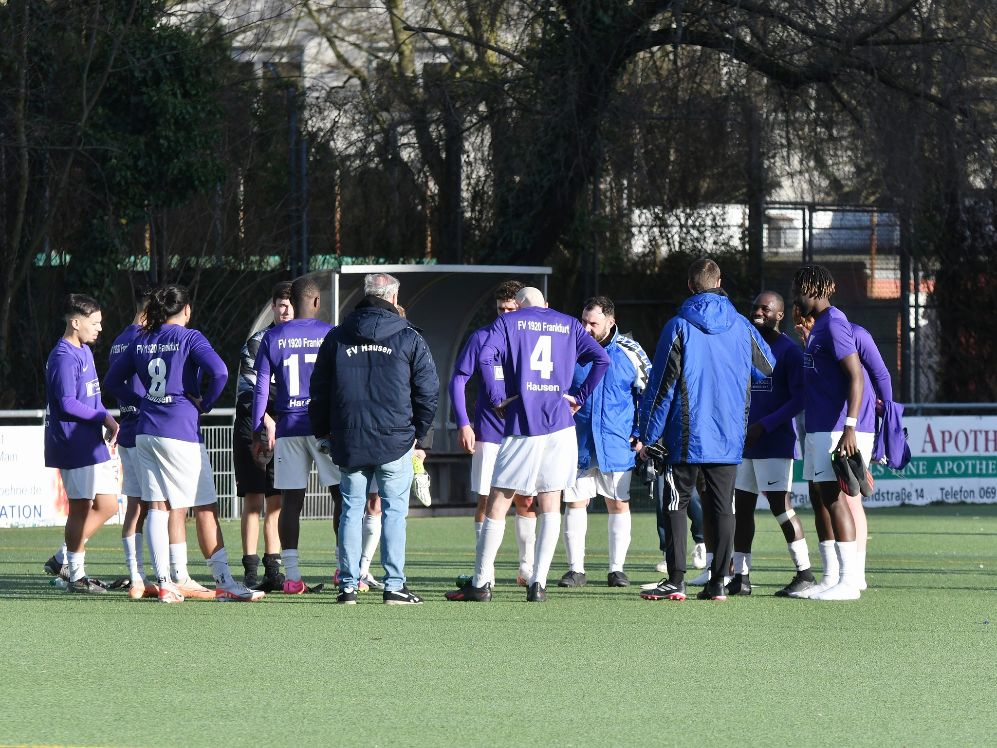 Die Partie war gedreht worden, da der Kunstrasenplatz der Hausener derzeit wie einige andere erneuert wird und noch nicht bespielbar ist. Die Ausweichstätte in Niederursel stand wegen Trainingsbelegungen nicht zur Verfügung. Von den aktuellen Platzierungen her war zwischen dem Siebten der Gruppe 2 und dem Siebten der Gruppe 1 kein Favorit im Vorfeld auszumachen und so entwickelte sich in Goldstein ein typisches Pokalspiel zweier Mannschaften auf Augenhöhe.