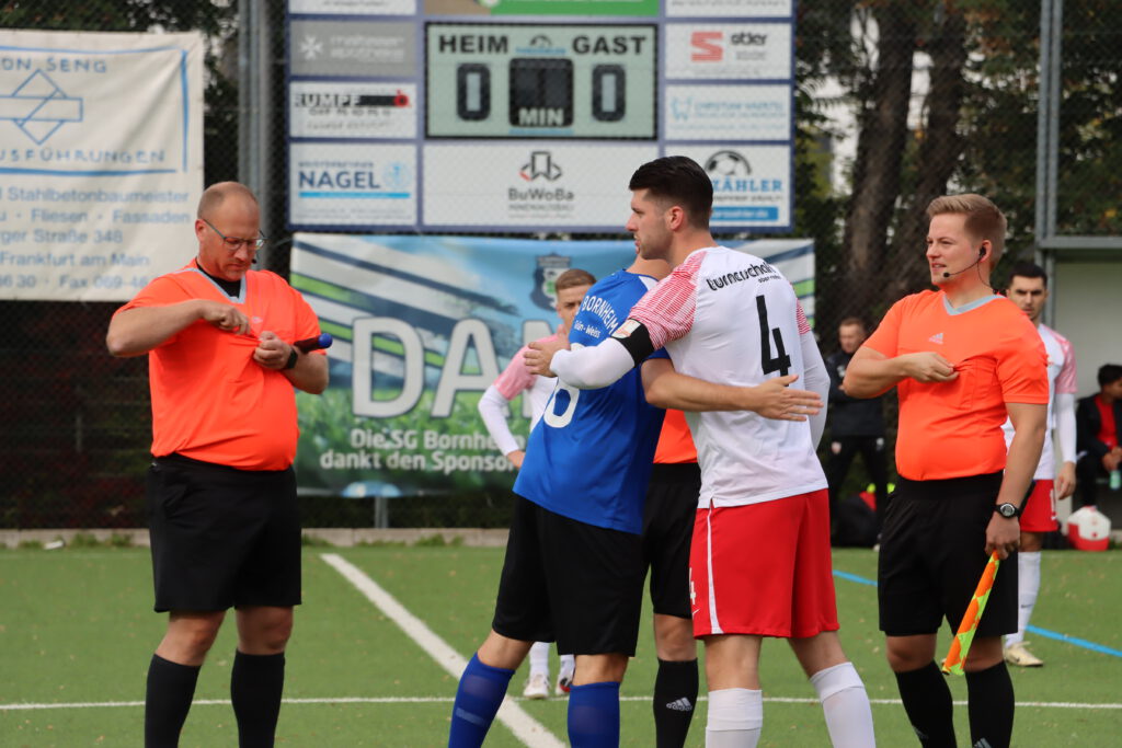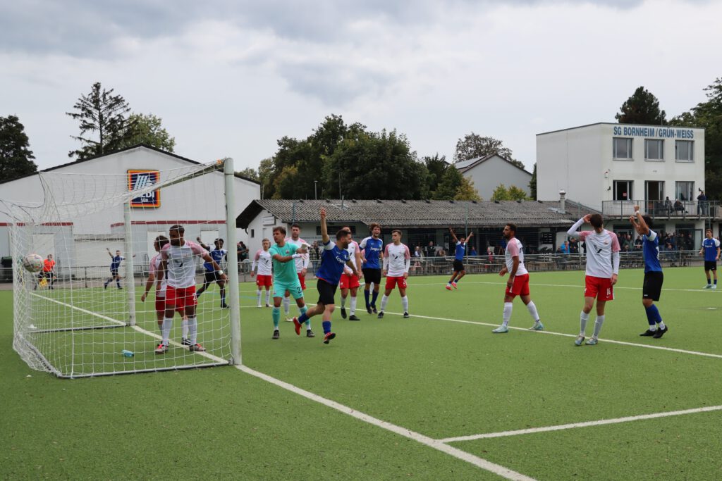 In Bornheim traf die einheimische SG als Tabellenvorletzter auf die TS Ober-Roden, den Tabellendrittletzten, und es entwickelte sich in der ersten Halbzeit ein überraschend einseitiges Spiel. Die Bornheimer waren spielerisch überlegen und erspielten sich in der ersten Hälfte einige Chancen, für die Tore mussten dann aber Standards herhalten. In der 21.Minute schlug Lukas Knell eine Ecke von rechts in die Mitte, die von Joel Tewelde mit dem Kopf verlängert wurde. Tim Benedict Fließ hatte keine Mühe, den Ball aus 3 Metern mit dem Kopf zum 1:0 über die Linie zu drücken.