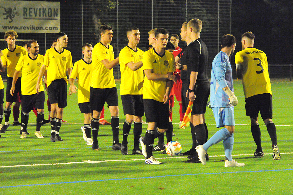 Etwas überraschend vom Zeitpunkt her dann die Führung für die Gäste von Rot-Weiss in der 45.Minute, als sich Alexander Koziolek auf der linken Seite durchsetzte, sein Schuss aus 8 Metern aus spitzem Winkel wurde von Torwart Hess in die eigenen Maschen gelenkt. Auch in der zweiten Hälfte war es ein verteiltes Spiel, in der 58.Minute sah es nach einer Vorentscheidung für den Verbandsligisten aus, als Elias Weber nach einem schönen Zusammenspiel den Ball nur noch ins Tor zum 2:0 einschieben musste. Doch der Torwart der Rot-Weissen brachte die Seckbacher in der 68.Minute wieder ins Spiel, einen Schuss aus 25.Metern ließ Nicolas Meurer Camacho durchrutschen zum 1:2.