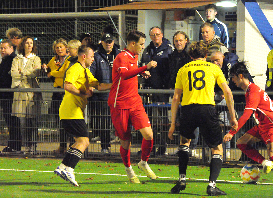 Angefeuert durch den Stadionsprecher und die dadurch animierten Zuschauer rochen die Seckbacher Lunte und dominierten ab da das Spiel. In der 80.Minute war es dann Shuya Harada, der mit einem Schuss aus der Drehung aus 12 Metern den 2:2-Ausgleich erzielte. Und nur 4 Minuten später setzte Milad Wardak noch einen drauf und erzielte die Führung für die Gastgeber, als er aus spitzem Winkel im Nachschuss zum 3:2 erfolgreich war. Jetzt herrschte eine tolle Stimmung beim Seckbacher Anhang, die Benedict Linzenmeier in der 89.Minute mit dem 4:2 noch mehr anheizte. Gegen die offenen und auf den Ausgleich drängenden Gäste setzten die Seckbacher einen Konter, der mit dem 4:2-Endstand für den Außenseiter endete.