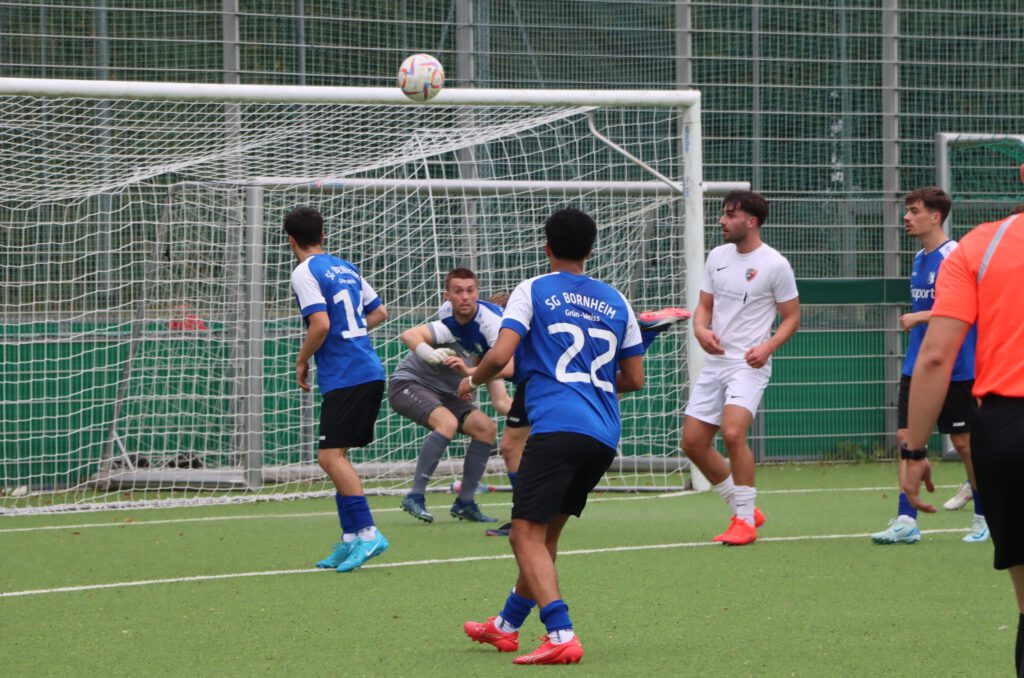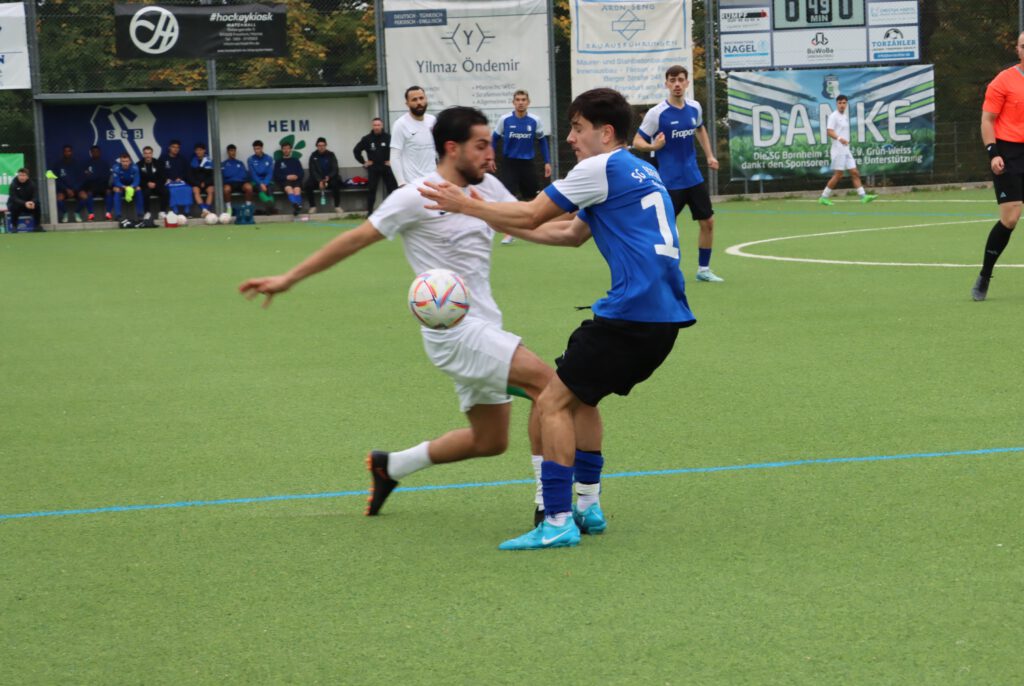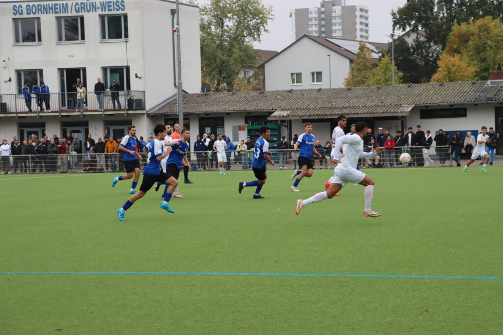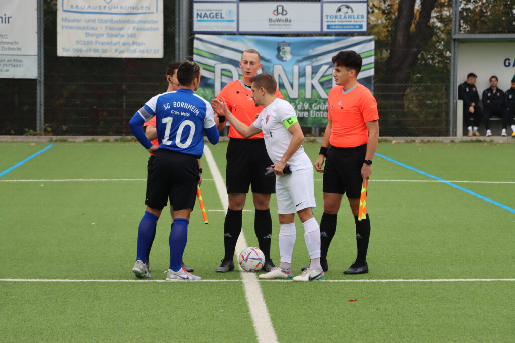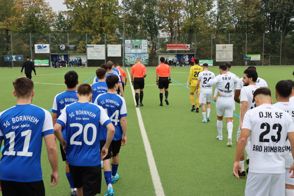 Gegen den Gegner aus Bad Homburg, der sich zuletzt im Aufwind befunden hatte, zeigten die Gastgeber in einem intensiven und guten Spiel eine engagierte Leistung und erzielten sogar ein Chancenplus, im Angriff fehlte aber die letzte Konsequenz und die Effizienz. Der diesmal aufgebotene Bornheimer Torhüter Jonathan Höser sorgte im Spiel zweimal für eine Schrecksekunde, als er im Dribbling gegen einen Bad Homburger den Ball verlor, beim ersten Mal zielten die Gäste knapp am Tor vorbei, beim zweiten Mal scheiterten sie am Lattendreieck. Ansonsten kamen die Bad Homburger nur nach Kontern zu kleinen Chancen.