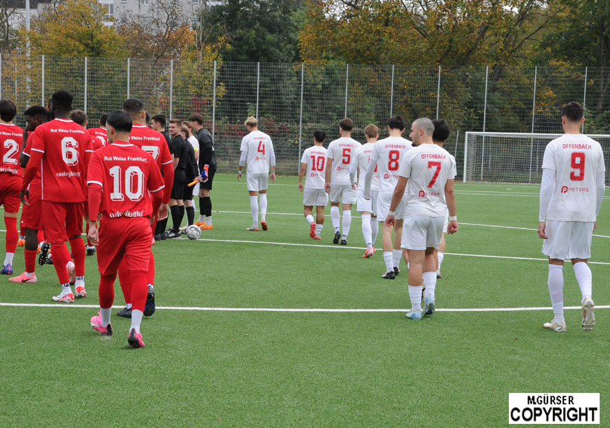 Ergebnistechnisch läuft es derzeit nicht bei den Rot-Weissen aus Frankfurt, denn auch gegen die zweite Vertretung von Kickers Offenbach ließ man Punkte liegen und konnte sich nicht weiter ins Mittelfeld der Tabelle absetzen. Dabei lieferten die Gastgeber wieder mal ein gutes Spiel ab, Trainer Ibo Cigdem: „wir haben einen super Fight abgeliefert, sehr diszipliniert gespielt und fast nichts zugelassen, gegen eine Mannschaft mit Qualität wie Offenbach gibt es immer Chancen für den Gegner, aber die hat Kai (Torwart Kai Klug, die Redaktion) zunichtegemacht.“