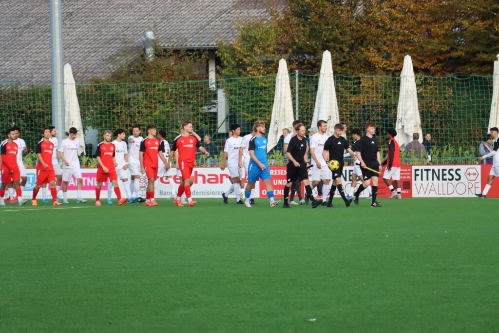 Das Spiel war in der ersten Halbzeit lange auf Augenhöhe, beide Mannschaften konnten ihre Gelegenheiten, die sie in der Offensive hatten, nicht richtig ausspielen oder nutzen. In der 37.Minute gingen die Gastgeber aus Walldorf dann aber mit 1:0 in Führung, als Kays Iraqi den Ball von einem Mitspieler so gut aufgelegt bekam, dass er ihn nur noch einschieben musste. Mit dieser Führung ging es dann auch in die Halbzeitpause.