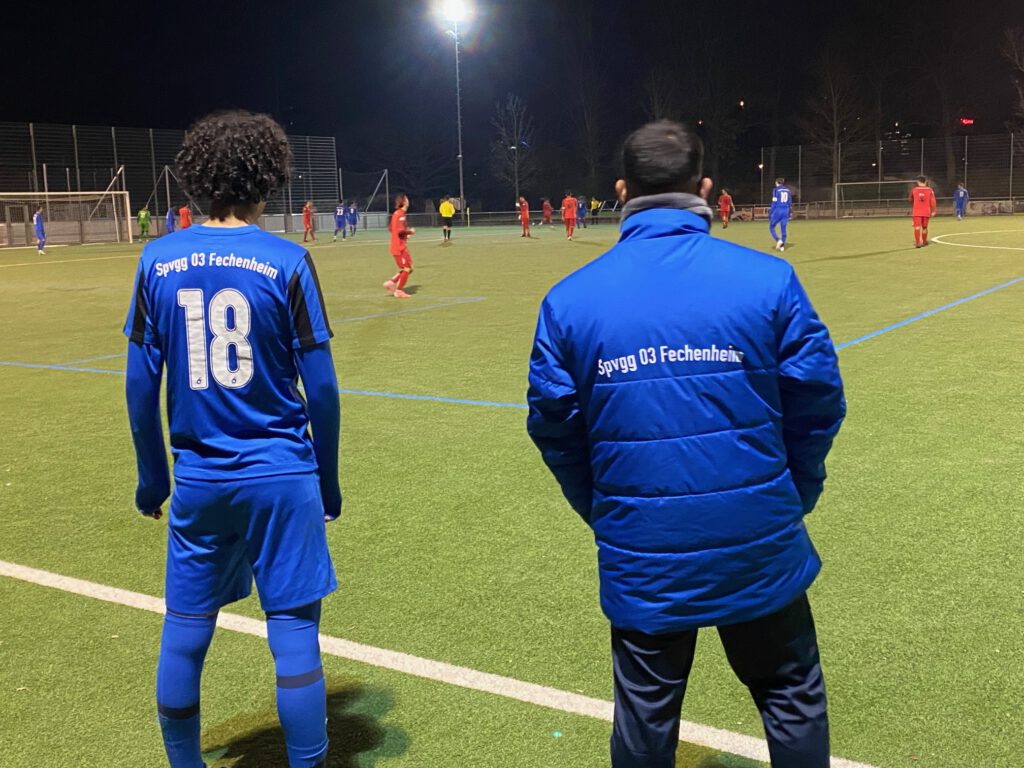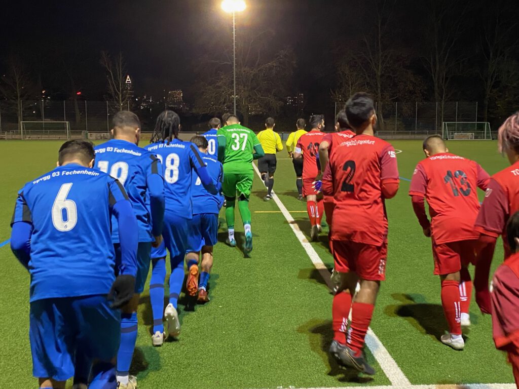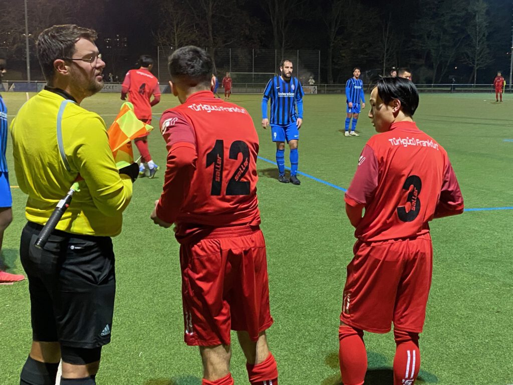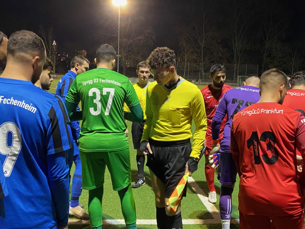 Zum dritten Mal in dieser Saison traf Türkgücü Frankfurt auf die Spvgg. 03 Fechenheim, und zum dritten Mal gingen die Fechenheimer als klarer Sieger vom Platz. Fechenheims Trainer Piradeep Siva Anandan wartete mit einer Überraschung auf, im Tor spielte Ayoub Marzak, für Armin Buchholz blieb diesmal nur die Bank. Bei eisigen Temperaturen knapp über dem Gefrierpunkt wurden die Gastgeber von Türkgücü auf dem Platz am Rebstock „kalt“ erwischt. Bereits in der 3.Minute gingen die Gäste durch ein Tor von Yassin Chaouki nach einer Hereingabe mit 1:0 in Führung und verpassten weitere Gelegenheiten zur Erhöhung des Ergebnisses.