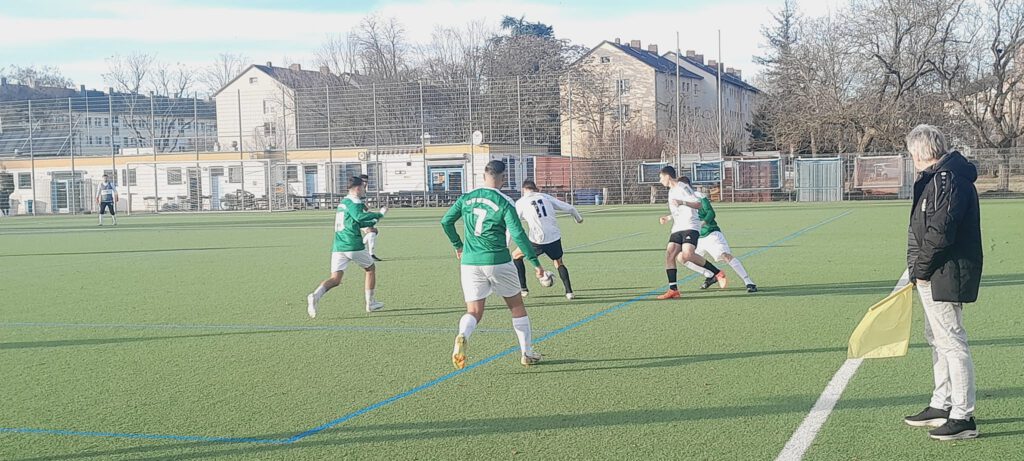 Die 54 Zuschauer sahen dann ein durchaus elfmeterreifes Foul an Solarz, den Schiedsrichter Cedrick Djeuta Nana (SV Darmstadt 98), der übrigens die gleiche Paarung an Ort und Stelle vor zwei Jahren schon einmal leitete (2:4), nicht pfiff. Im Gegenzug landete ein Eckball von Miranda am Pfosten (39.). Nach dem Seitenwechsel ersetzte bei den Gästen Yassir Achati den angeschlagenen Erbulan und Deniz Yatci übernahm die Kapitänsbinde. Ein langer Ball aus dem Halbfeld in den Lauf von Solarz reichte aus, um auf und davon zu ziehen und zum 2:2 zu versenken (50.). Dann wurde Torjäger Marcus Kreckel eingewechselt, der in den letzten zwei Wochen nicht trainieren konnte und deswegen von der Bank kam. In der 63. Minute gekommen, erlief sich der Stürmer einen Freistoß aus dem Halbfeld von Felix Bürmann und traf mit seinem 18. Saisontreffer zum 2:3 (68.).