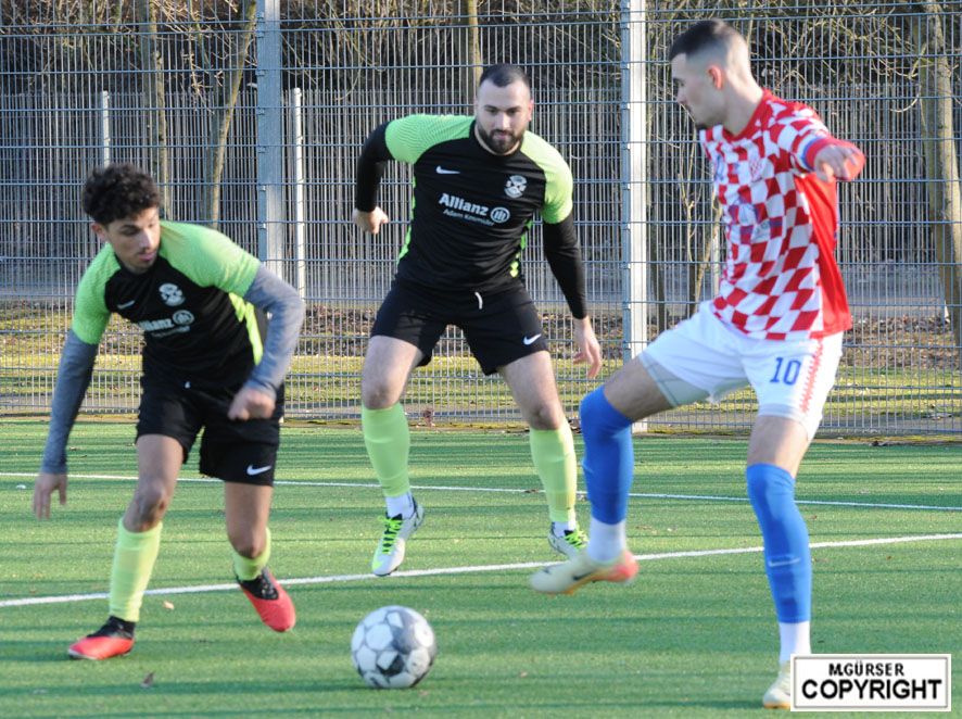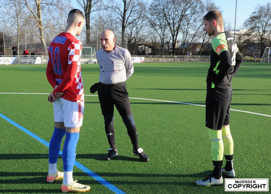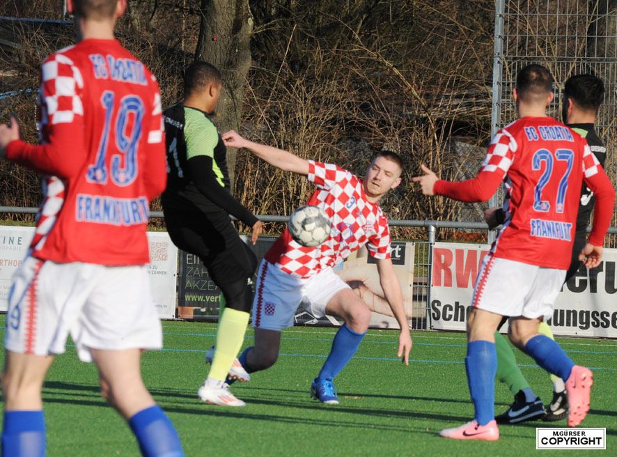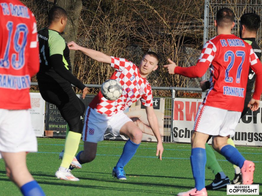 Die klassenhöheren Gäste waren durch Ante Strljic in Führung gegangen (14.). Strljic (35.) und Marcel Ladan (36.) erhöhten auf dem Kunstrasenplatz am Rebstock auf ein komfortables 3:0, ehe den Hausherren kurz vor der Pause durch Omar Nerolatif der Anschluss gelang (44.). Nach dem Seitenwechsel wechselte Croatia auf der Torhüterposition.