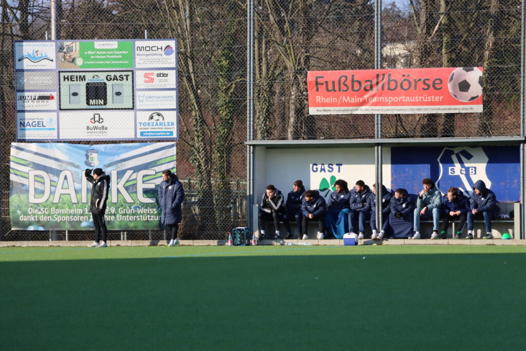 Bornheims Trainer Maik Rudolf konnte 21 Spieler einsetzen und wechselte im Laufe der zweiten Halbzeit fast komplett durch. Max Zeller (1.), Hicham Boujerad (24./52.), Tim Fließ (45.), Maazin Adam Ahmed (72.), Aaron Neu (80.) und Tim Stahl (90.) erzielten die Tore für Bornheim.