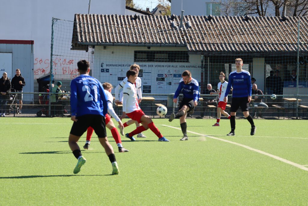 Die SG Bornheim bleibt nach der 0:5-Niederlage gegen den SKV RW Darmstadt auf dem 13.Tabellenplatz hängen, der nach jetzigem Stand der erste Nichtabstiegsplatz ist, das bedeutet aber noch keine Sicherheit. Die ersatzgeschwächten Gastgeber erlebten einen schwachen Beginn, schon in der 7.Minute gingen die Gäste durch ein Tor von Robin Schwarz mit 1:0 Führung, nur zehn Minuten später wurde Schwarz erneut steil geschickt, umkurvte den Torwart und vollendete in der 17.Minute zum 2:0 für die Gäste. Die Darmstädter hätten bis zur Pause noch weiter erhöhen können, doch es blieb beim 0:2 aus Bornheimer Sicht.