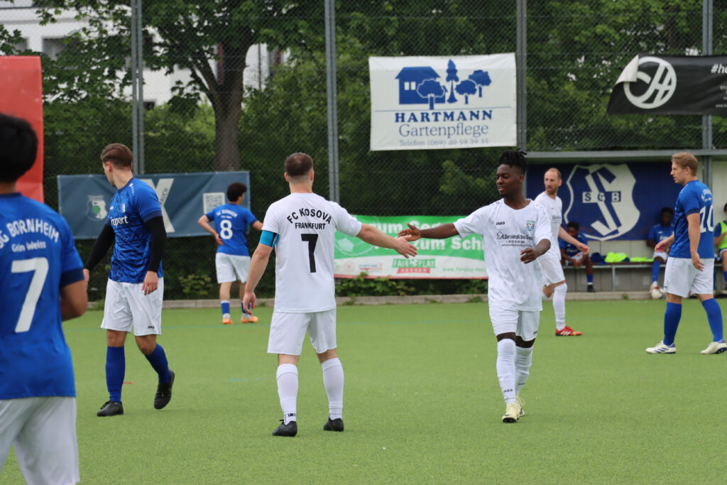 Bornheims Trainer Marco Santonastaso wollte mit einer defensiven Ausrichtung „so lange wie möglich die Null halten.“ Das gelang zumindest im ersten Abschnitt und die Bornheimer kamen sogar mit einigen Halbchancen vor das Tor der Kosovaren. Die Gäste drehten aber nach einer lauten Kabinenpredigt von Trainer Jorge Huberman nach dem Seitenwechsel auf. Der agile Michael Junior Lamptey schob zum 1:0 für die Gäste ein (54.), danach erhöhte Kapitän und Torjäger Flakron Thaci auf 2:0 (56.). Die Kosovaren verwalteten dann den Vorsprung und Bornheims U19-Torhüter Younes Hamouti konnte noch einige Situationen klären. Die Bornheimer sind drei Spieltage vor Schluss weiter punktgleich mit Griesheim Tarik und dem FC Croatia, diese beiden Vereine belegen die momentanen beiden Abstiegsplätze. Sollte kein weiterer Frankfurter Verein neben den „Speuzern“ aus der Gruppenliga absteigen, bleibt es bei dieser Konstellation.