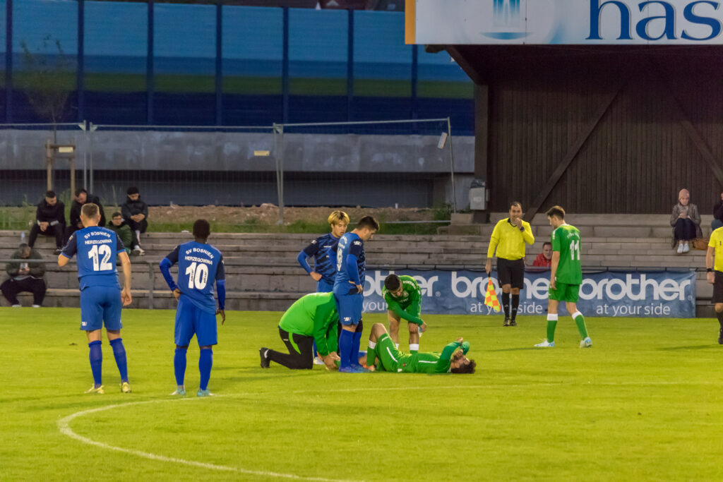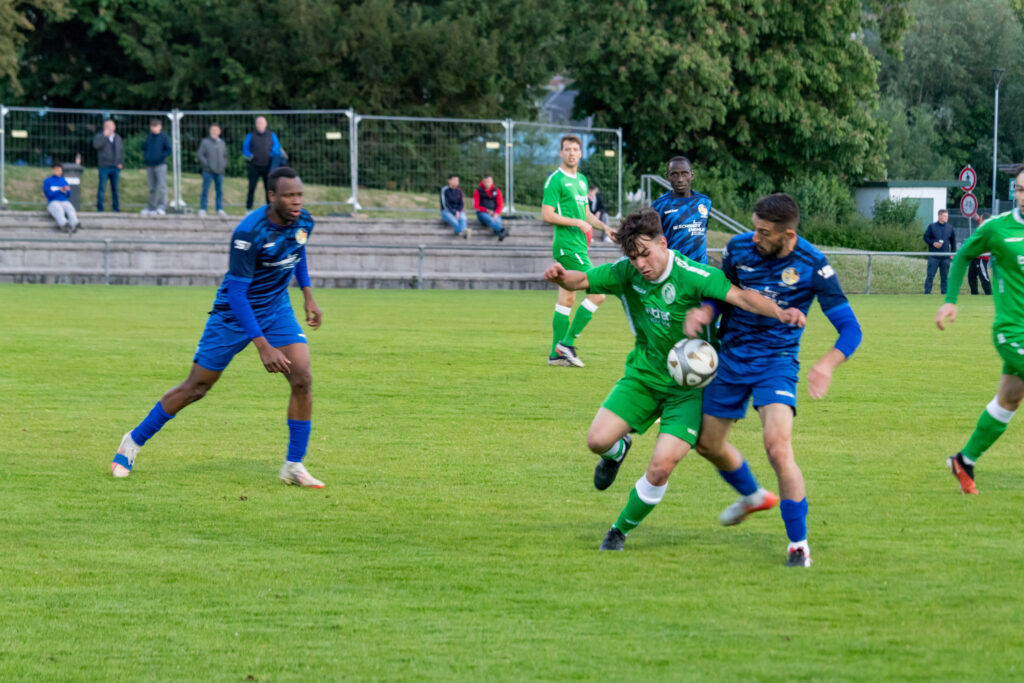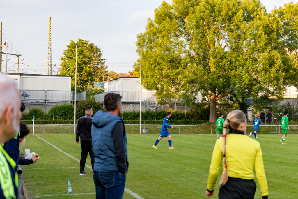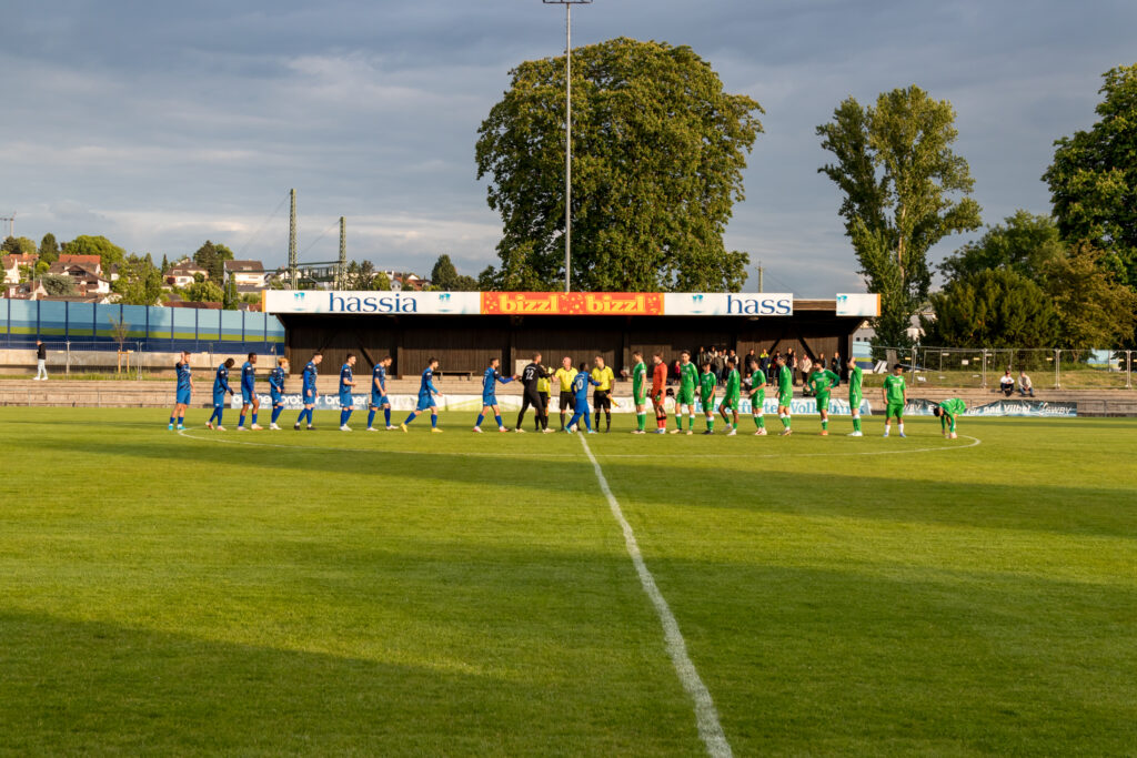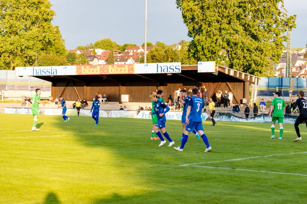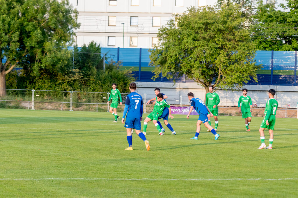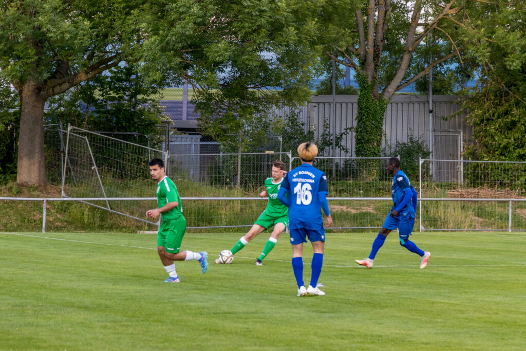 Für den FV Bad Vilbel war die Ausgangslage klar, die beiden restlichen Spiele mussten gewonnen werden, um diesmal dem Abstieg in die Kreisoberliga zu entgehen, und so ging die Mannschaft das Spiel auch an. Mit großem Einsatz kämpften die Kurstädter gegen den favorisierten SV Bosnien/Herzegowina und kamen auch zu Chancen, in der 8.Minute traf Baris Samadi nur die Querlatte des bosnischen Gehäuses. Die Gäste, deren Trainer Amir Mustafic jahrelang Trainer beim FV Bad Vilbel war, kamen langsam besser ins Spiel, ließen aber in der Offensive Effektivität vermissen. So musste ein Standard für ein Tor der Bosnier herhalten, ein langer Freistoß wurde von Dennis Hadzimusic mit dem Kopf in die Mitte verlängert, wo Boubacar Dialiba Diabang keine Mühe hatte, den Ball zum 1:0 zu versenken, da waren schon 40 Minuten gespielt. Mit diesem Ergebnis ging es auch in die Halbzeit.
