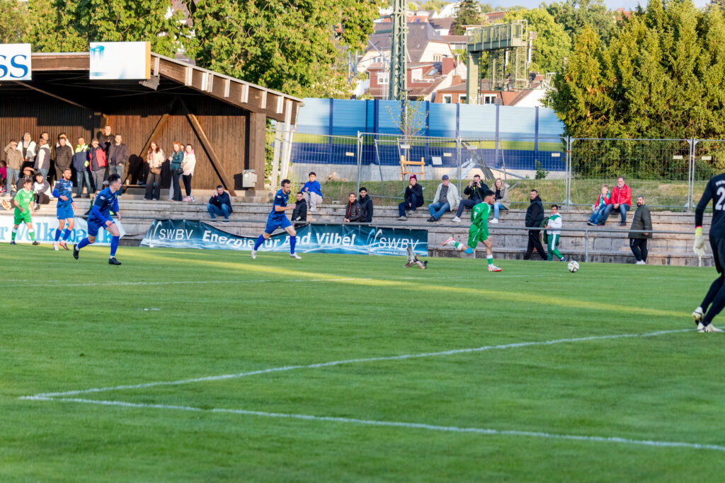 Nach der Pause übernahmen die Gäste dann komplett die Spielkontrolle, die Gastgeber hatten dem nicht mehr viel entgegenzusetzen. Die Mannschaft des FV Bad Vilbel war in der 69.Minute dann komplett im Tiefschlaf, ein Freist0ß von der Mittellinie von Amer Ibrisimovic wurde hinter die Abwehrkette gespielt und Safet Mujkic hatte keine Probleme, frei vor Torwart Max Ehrig das 2:0 zu erzielen. Das Spiel plätscherte dann so dahin, es gab kaum noch Torchancen, und Bad Vilbel steht unmittelbar vor dem Abstieg in die Kreisoberliga.