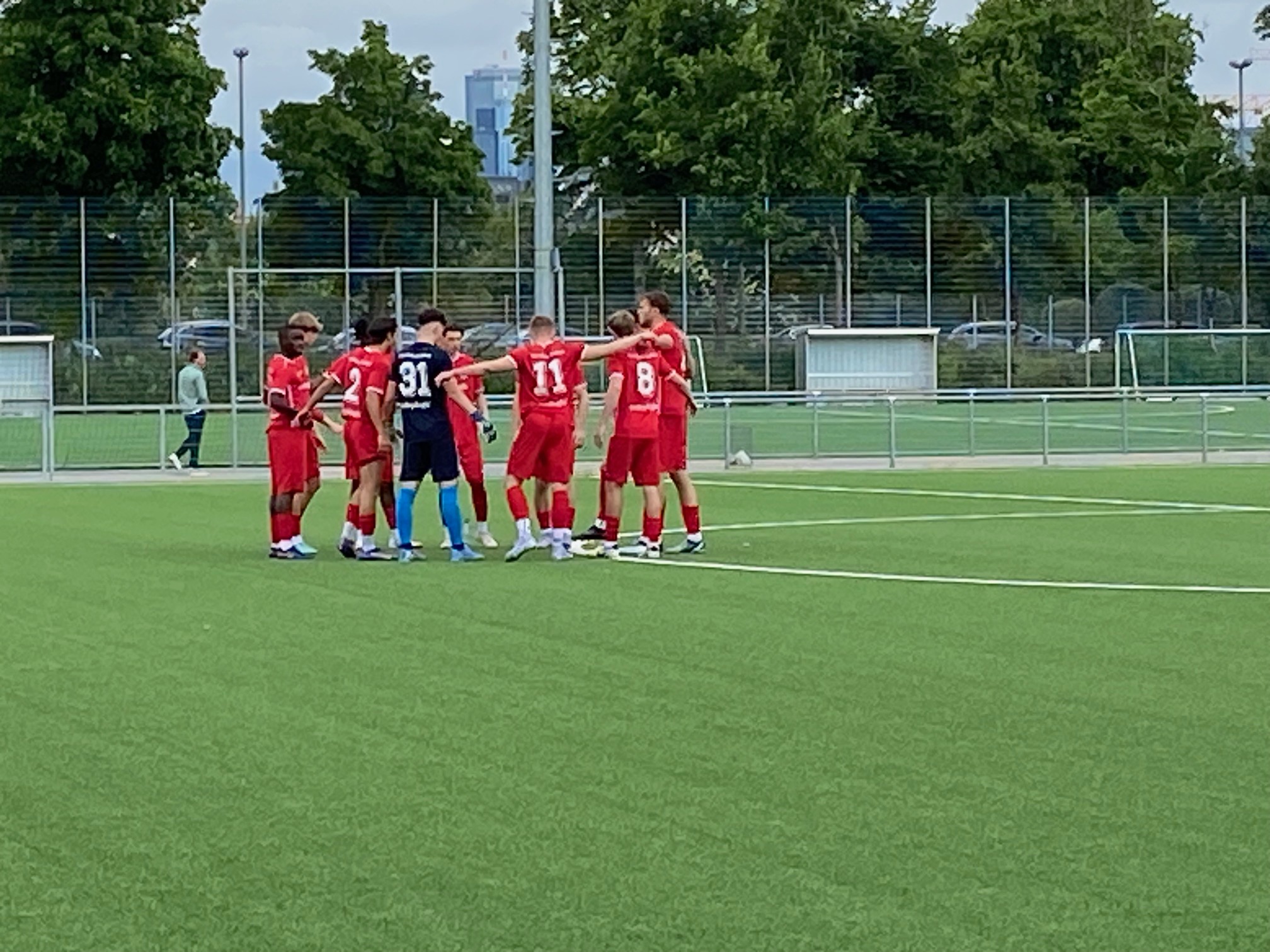 Nach dem Abpfiff des Schiedsrichters gab es auf dem Platz noch eine Rudelbildung, was zu zwei weiteren gelben Karten führte, auch neben dem Platz waren einige aufgebrachte Seligenstädter Fans nicht zu beruhigen, was unseren Informationen zufolge den Platzwart wohl dazu bewegte, die Polizei herbeizurufen, allerdings waren diese Probleme schon vor dem Eintreffen der Beamten erledigt.