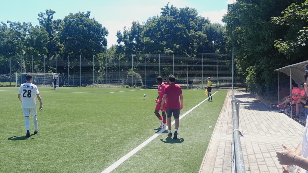 Bei 33 Grad im Schatten wurde parallel zu einem Jugendturnier schon um 13 Uhr gespielt, wobei sich der eigentliche Anpfiff um zehn Minuten verschob.