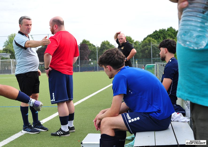Weiter ging es 500 Meter weiter zum Ginnheimer Wäldchen zu meinem ehemaligen Jugendverein Blau-Gelb. Zu Gast beim Frankfurter A-Ligisten waren die Freien Turner, Kreisoberligist aus Wiesbaden. Hitzig ging es vor allem nach dem Seitenwechsel zu, der Schiedsrichter schaute einer Rudelbildung gelassen zu, ohne groß zu reagieren. Erst als er mit einem Sonderbericht drohte, kehrte die Vernunft bei den Akteuren ein. Blau-Gelb hat eine entwicklungsfähige junge Mannschaft, die man gerne wieder in der KOL sehen würde. Um aus der A-Liga aufzusteigen, benötigt man aber Konstanz, im Vorjahr war man Dritter, davor Zweiter und scheiterte dramatisch in der letzten Minute der Relegation.