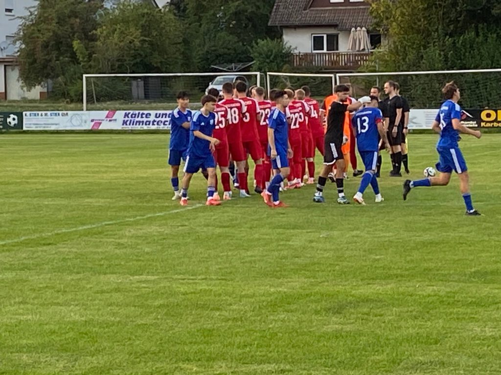 Ein Blick auf die Mannschaftsaufstellung am Anfang der Partie zeigte, dass die FG Seckbach mit einer offensiven Ausrichtung gewillt war, der ersten Saisonsieg einzufahren, Spielertrainer Manuel May: „wir gehen All-In.“ Und das setzten seine Spieler auch von Anfang an in die Tat um, bereits in der 5.Minute musste Kaichens Torhüter Louis Korn zweimal bei einer Doppelchance großartig reagieren, um Schüsse von Florian Schuberth und Benedict Linzenmeier abzuwehren. Und die Seckbacher hatten weitere Chancen, in der 7.Minute rettete ein Verteidiger bei einem Schuss von Raphael Sahl auf der Linie, in der 23.Minute landete ein Kopfball von Adrian Speck nach einer Ecke am Pfosten und in der 28.Minute scheiterte Yannick Siering mit einem Distanzschuss am gegnerischen Torwart. Die Gastgeber vom FC Kaichen kamen nur einmal gefährlich vors Tor, als ein Schuss aus 14 Metern knapp über den Winkel strich. So ging es mit dem torlosen 0:0 in die Halbzeit.