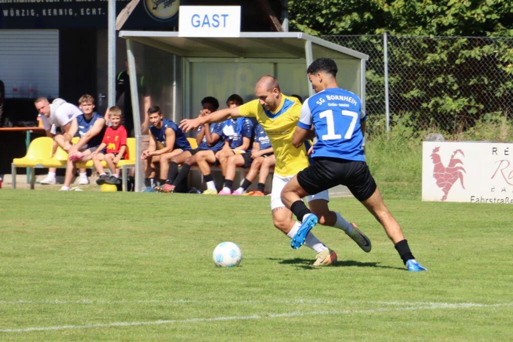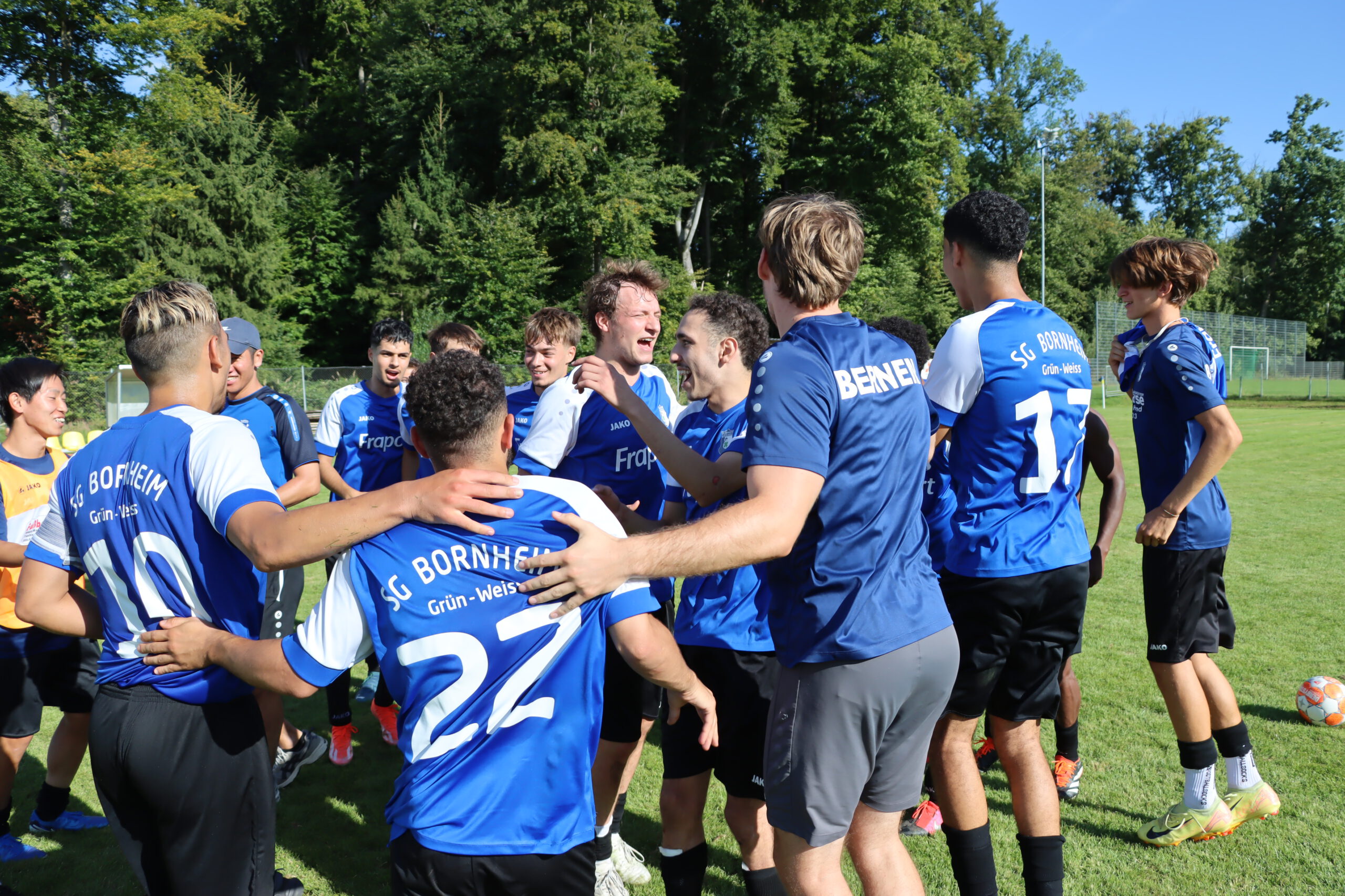 In der ersten Halbzeit waren die Bornheimer etwas besser im Spiel als der Aufsteiger, Patrick Albert scheiterte in der 37.Minute mit einem Schuss an der Querlatte. In der zweiten Hälfte verließen die Bornheimer dann etwas die Kräfte, Yalcin: „wir sind konditionell noch nicht fit für 90 Minuten.“ Fast 20 Minuten entwickelte sich von beiden Seiten ein Kick-And-Rush, das die Gäste aber überstanden, weil sie in der Verteidigung sehr aufmerksam waren und kurz nach der Pause bei einem Lattentreffer von Clay Verkaj auch Glück hatten. In der 74.Minute durften die Gäste dann jubeln, Bilal Zerouali verwandelte eine der vielen Ecken direkt zum Siegtreffer und brachte den Bornheimern die ersten drei Punkte. Der eingewechselte A-Jugendliche Barry Arens hätte am Schluß noch zum „Man of the Match“ werden können, scheiterte mit zwei Schüssen aber nur knapp.