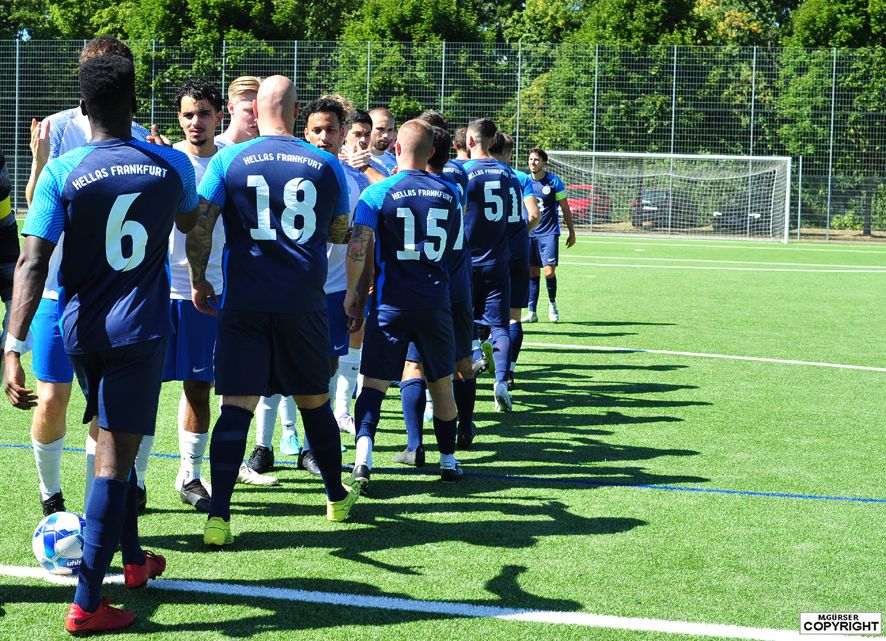 Vor drei Jahren noch in der Kreisliga B, hat der griechische Verein eine tolle Entwicklung genommen und trägt seine Heimspiele nun an der Hahnstraße in Niederrad aus, da der alte Sportplatz an der Wilhelm-Epstein-Straße in Ginnheim dem neuen Makkabi-Sportzentrum weichen musste. Den Gästen, erst in der Relegation vor dem Abstieg gerettet, gelang durch Neuzugang Pascal Bausch die Führung (15.). Bis zur Pause konnte Hellas aber aufdrehen und durch Ilir Chounta or Huda (40.) ausgleichen.