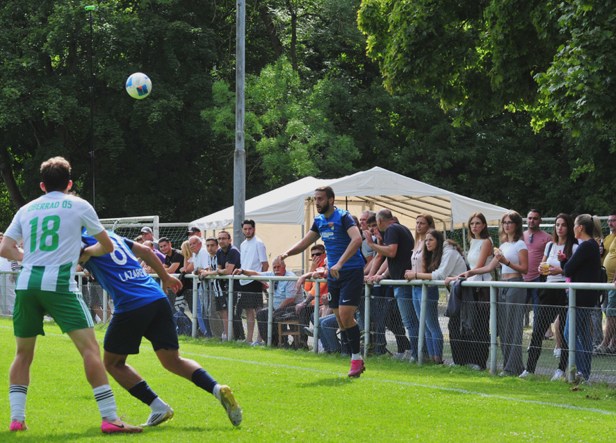In der 87.Minute folgte dann der personelle Gleichstand, nachdem Ersan Rovcanin nach einem Foul die gelbe und wegen Meckerns dann die gelb-rote Karte erhielt. Den Lucky Punch verpasste kurz vor Schluss für Oberrad Bremerich, der frei vor Torwart Stojilkovic an den Ball kam, ihn aber am Tor vorbeispitzelte. Oberrads Trainer Maximilian Schmidt nach dem Spiel: „ich bin immer noch gestresst, auf jeden Fall eine stressige Schlussphase, ich glaube, wir hätten heute den Sieg verdient. Wir waren gerade in der zweiten Halbzeit läuferisch überlegen und hatten nach der gelb-roten Karte sehr viele Chancen, die wir aber nicht gut zu Ende gespielt haben. Tempo hat schön im tiefen Block verteidigt, dadurch war es schwer, etwas in der Box zu kreieren. So kommt das 0:0 am Ende zustande. Es ist sicherlich eine schwer zu bespielende Mannschaft, sowohl von der Stimmung her auf dem Sportplatz als auch auf dem Platz, ich denke, wir haben alles in die Waagschale geworfen, um hier ein Tor zu erzielen, das ist uns heute nicht vergönnt gewesen.“