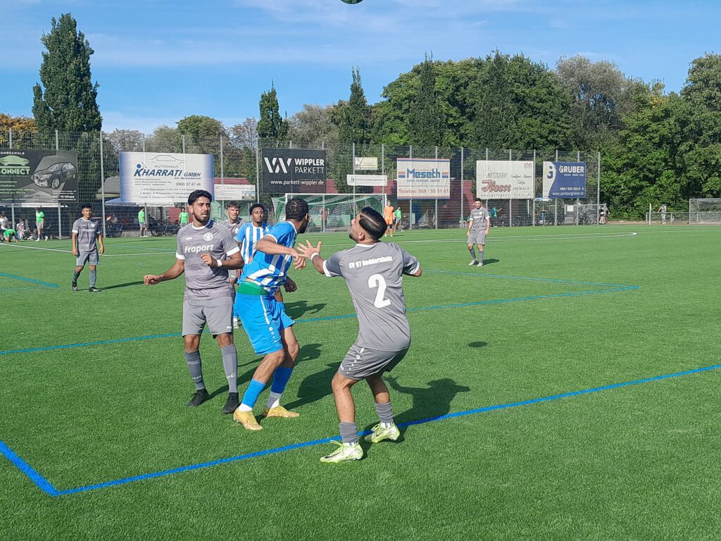 Im Hintergrund stand Vereinspatron Esad Golos parat, der sich auch zum Trainerwechsel äußerte: „Wenn man mit so einer Mannschaft mit einem Punkt startet, schrillen die Alarmglocken. Dann muss ich als Präsident eingreifen, wenn etwas nicht funktioniert.“ Von Verunsicherung war bei Aufsteiger Westend nichts zu spüren. Der Wiederaufsteiger umzingelte Heddernheim in der eigenen Hälfte und machte Druck. Die Gastgeber befreiten sich nur sporadisch. Abschlüsse wie die Flanke von Marco Yatci auf die Latte fielen in die Kategorie Zufallsprodukt. Anders Westend, das schnell und durchdacht nach vorne kam, sich so Standards erspielte. Bei einer Ecke stand dann der lange Abwehrspieler Mert Sayan frei und köpfte ein – 0:1 (24.). Erstmals in dieser Saison lagen die erneut in grau agierenden 07er zurück und es sollte noch dicker werden. Elfmeter für Westend und Kapitän Ismail Sy verwandelte, der Versuch wurde aber anulliert, da sich Spieler der Gäste zu früh in den Strafraum bewegten. Im zweiten Versuch blieb Sy cool, verwandelte auf die gleiche Manier und sorgte für Jubel beim zahlreich mitgereisten Westend-Anhang (34.). Heddernheim kam bis zu diesem Zeitpunkt kaum ins Spiel. Der Wendepunkt war der Anschlusstreffer nach einem langen Ball, den Marco Yatci in den Lauf von Torjäger Cherano Willeführ weitergab.