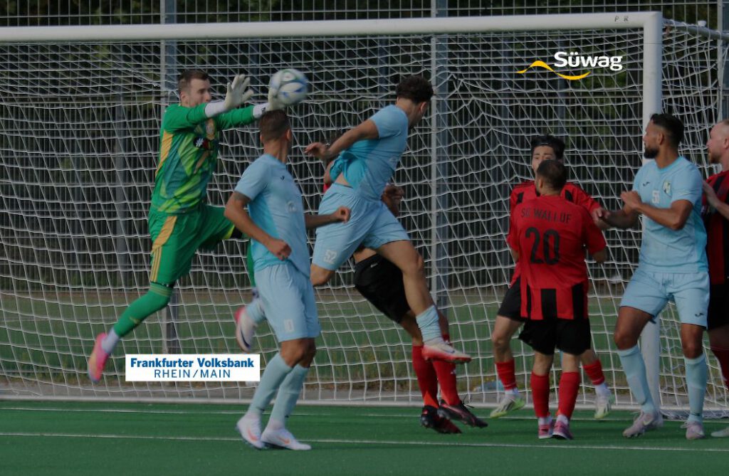 So kommen die „Grünen“ nicht vom Fleck und müssen sogar aufpassen, dass sie nicht in eine Abstiegsstrudel hineingeraten. Der 12. Tabellenplatz entspricht nicht den Ansprüchen der Mannschaft aus dem Frankfurter Westen. Dabei wäre beim Tabellenführer mehr drin gewesen. Schon zu Beginn der Partie hatten sie Spiel- und Chancenvorteile. Walluf kam erst zum Ende der 1. Halbzeit ins Spiel und hatte durch Marvin Kauer die Führung auf dem Fuß.