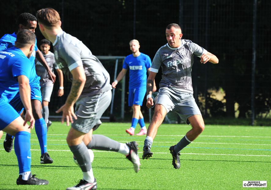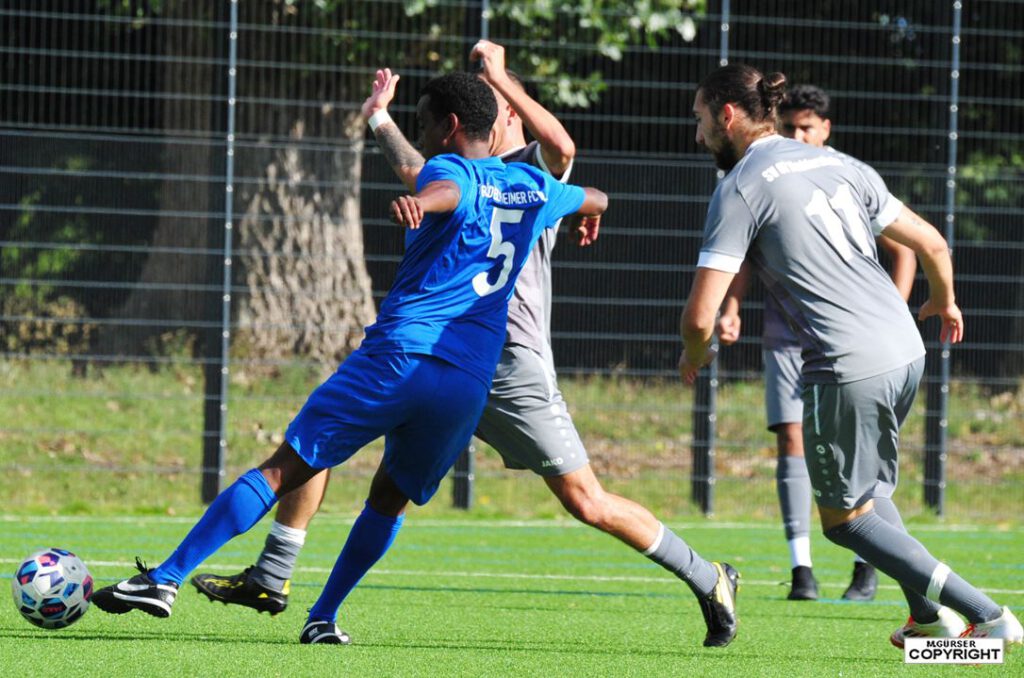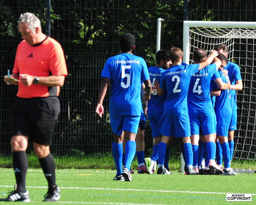 Die erste Schrecksekunde mussten die Platzherren nach 90 Sekunden überstehen. RFC-Torhüter Theo Wedel schoss SVH-Stürmer Christos Papadopoulos an, der Ball ging knapp drüber. An der Seitenlinie stand bei Heddernheim Vereinsikone Philipp Siegel in Vertretung des verhinderten Trainers Andreas Berggold. Er musste mit ansehen, wie Rödelheim durch einen schnellen Angriff, den Ertap Turgut vollendete, in Führung ging (21.). Überragend im Mittelfeld der frühere Bornheimer Verbandsliga-Fußballer Teklu Tewelde als „abkippender Sechser“. Das Fußballspielen hat der Regisseur trotz zweijähriger Verletzungspause nicht verlernt. Tewelde ist Jugendtrainer bei Rot-Weiss Frankfurt, wohnt in Rödelheim und hatte sich im Sommer dem RFC angeschlossen.