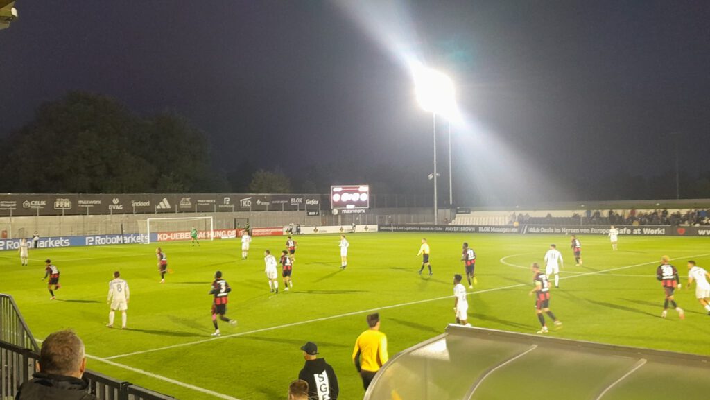 Die Gastgeber drückten weiter, verpassten aber weitere Tore durch Metehan Yildirim (23.) und Daniel Starodid (34.). Nur kurz nach dem Seitenwechsel hatte der „kleine HSV“ durch Maximilian Fröhlich eine nennenswerte Chance, ansonsten kam offensiv zu wenig von den Haunestädtern. Auch im zweiten Abschnitt hatten die Frankfurter noch genügend Chancen, um das Resultat höher zu gestalten. Der eingewechselte Jonas Bauer hatte Pech mit einem Pfostenschuss (74.). Weitere Abschlüsse von Nico Ochojski und Starodid fanden nicht den Weg ins Tor.