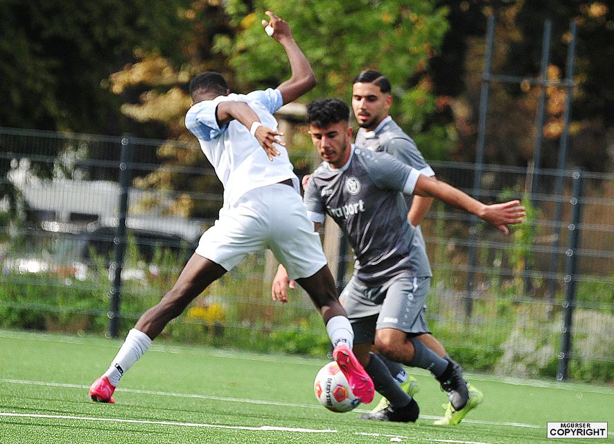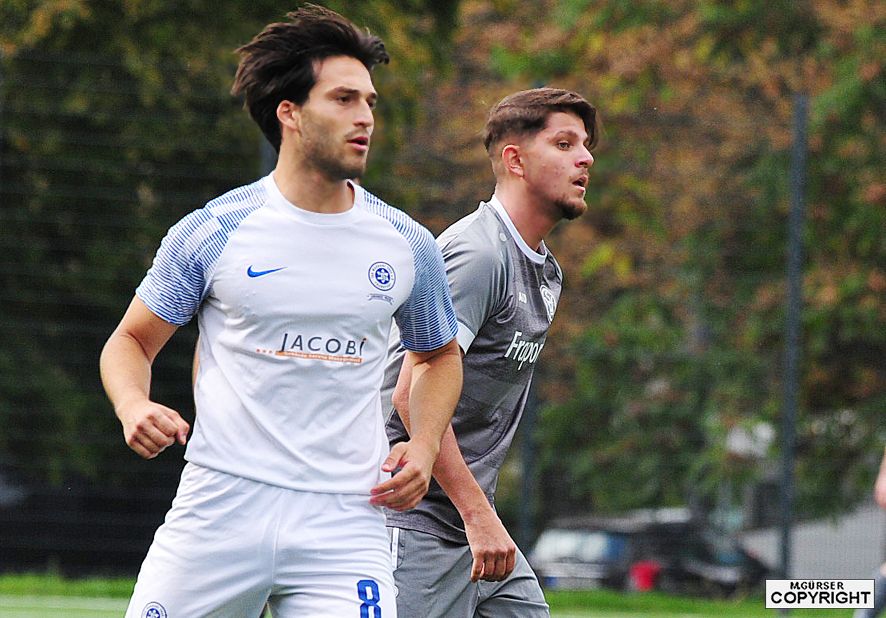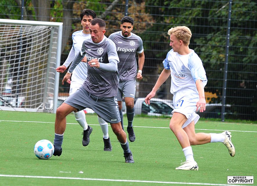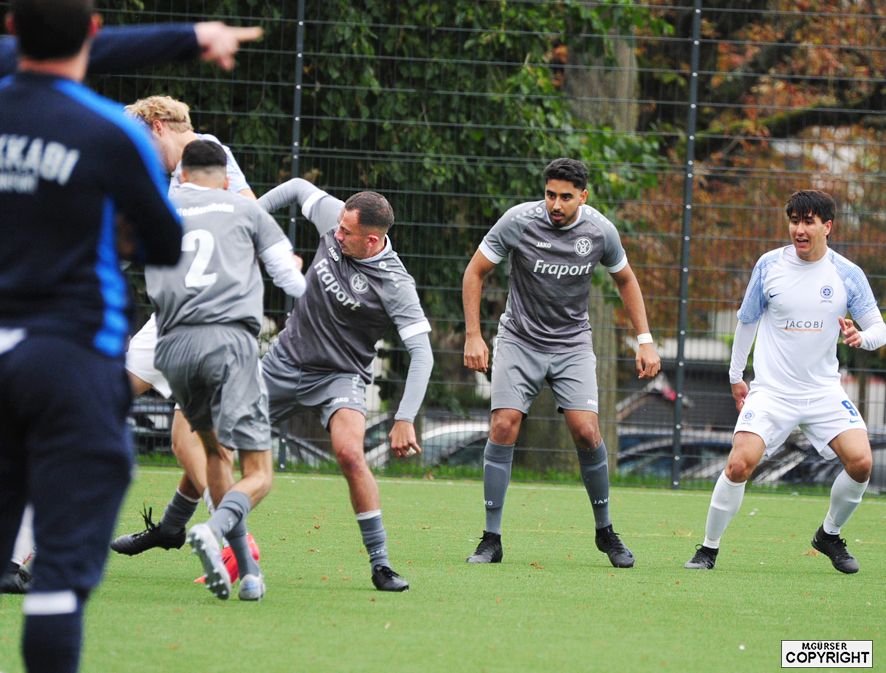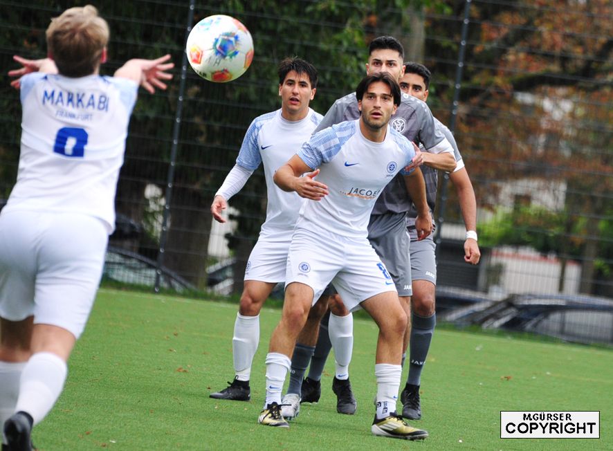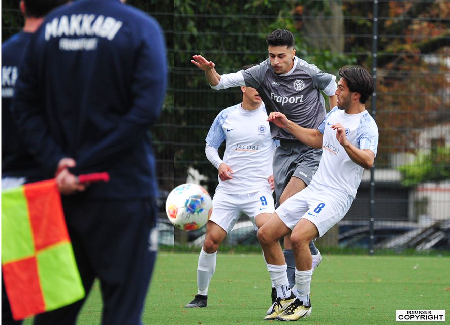 Die mit Spannung erwartete Partie zwischen den bisherigen Zweiten und Vierten der Tabelle brachte ein hochspannendes, emotionales Spiel auf der nun endlich umzäunten neuen künstlichen Bertramswiese. Die Gäste ließen sich in der Kabine viel Zeit, kamen erst verspätet aus der Kabine, sodass die Partie erst mit sieben Minuten Verspätung begann. Die Führung der „Grau-Weißen“ erfolgte dann nach einem schnellen Konter über Marco Yatci, der zu Cherano Willeführ spielte. Der Torjäger führte den Ball, drang in den Strafraum ein und traf flach zum 0:1 (11.). In der Folge kam Makkabi stärker auf, Etienne Merkel wurde im Strafraum geschickt und egalisierte mit Flachschuss zum 1:1 (23.). Kurz vor der Pause war Makkabi-Stürmer Branislav Glamocanin nicht zu stoppen, traf nach Doppelpass zum 2:1 (40.). Im Gegenzug hatte SVH-Innenverteidiger bei einer seiner vielen Aktionen nach vorne den Ausgleich auf dem Kopf. In der Halbzeit blieb bei den Gästen Ömer Güngör draußen, nicht weil er schlecht spielte, sondern weil er gelbbelastet war und das Risiko eines Platzverweises zu hoch war. Ihn ersetzte auf der rechten Seite der aus Oberursel gekommene Adam Abbass. Nach dem 3:1 der Makkabäer durch Glamocanin, der nach Zuspiel Merkels SVH-Tormann Marc Tomczyk umkurvte und einschob (55.), war das Momentum auf Seiten der Hausherren.