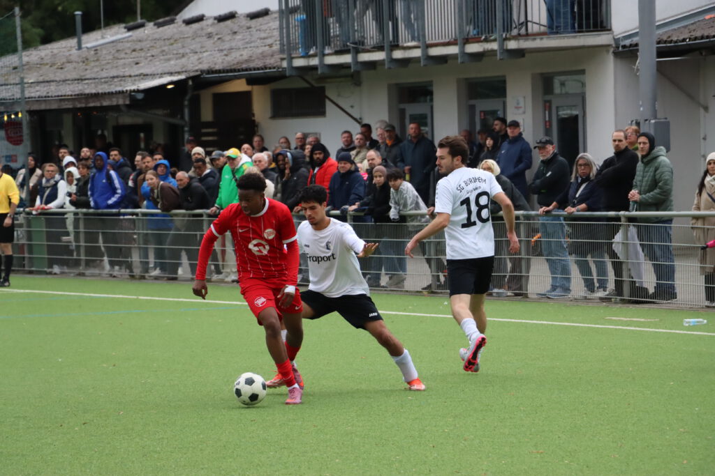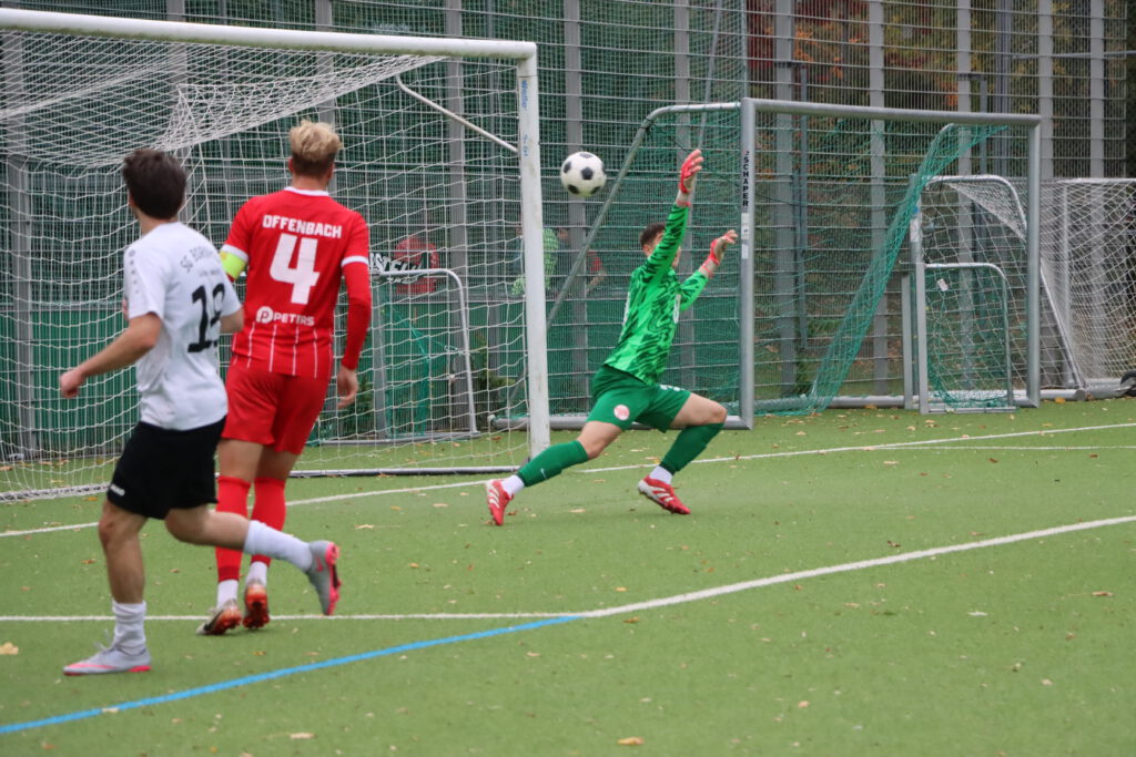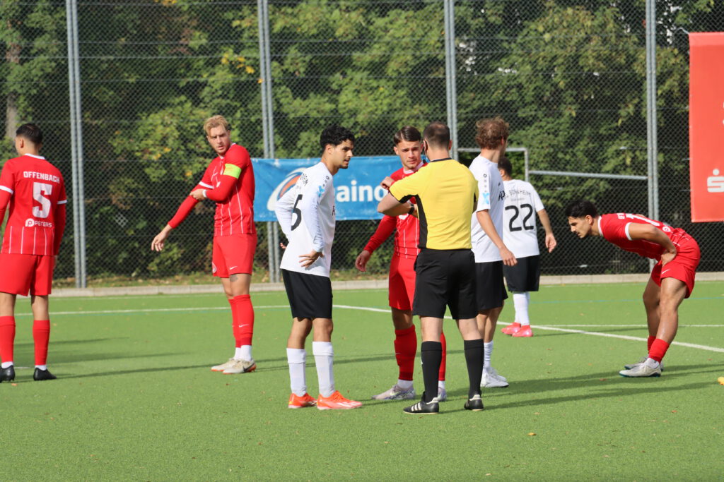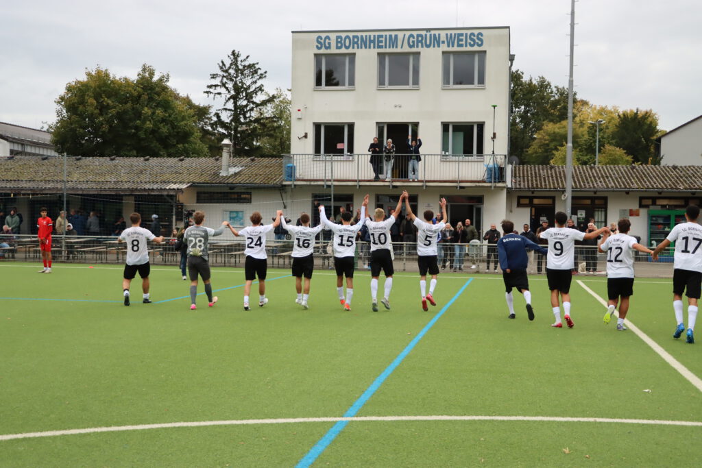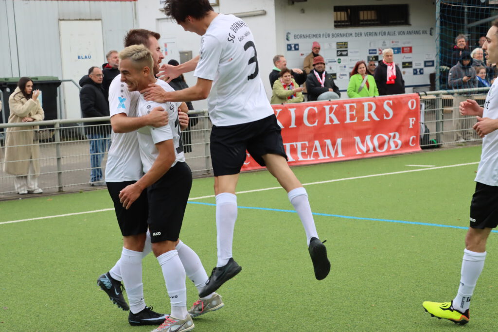 In der 33.Minute Glück für Bornheim, Carlos Fernandez tauchte frei vor dem SG-Tor auf, traf den Ball aber nicht. Die verdiente Führung für die Gastgeber dann in der 41.Minute, Patrick Albert eroberte in der gegnerischen Hälfte einen Ball und spielte ihn auf Lukas Knell, der aus der Drehung am Torwart vorbei das 1:0 erzielte. Damit ging es auch in die Pause. In der zweiten Halbzeit kamen die Offenbacher besser aus der Kabine und übernahmen die Spielregie, die Bornheimer hielten aber dagegen und eroberten durch ihr aggressives Pressing immer wieder Bälle im Mittelfeld, mit dem Pressing kamen die Gäste nicht zurecht und verloren im Aufbau viele Bälle. So musste dann ein Standard zum Ausgleich herhalten, nach einem Eckball war Richard Mben Bata per Kopf zum 1:1 erfolgreich (62.).
