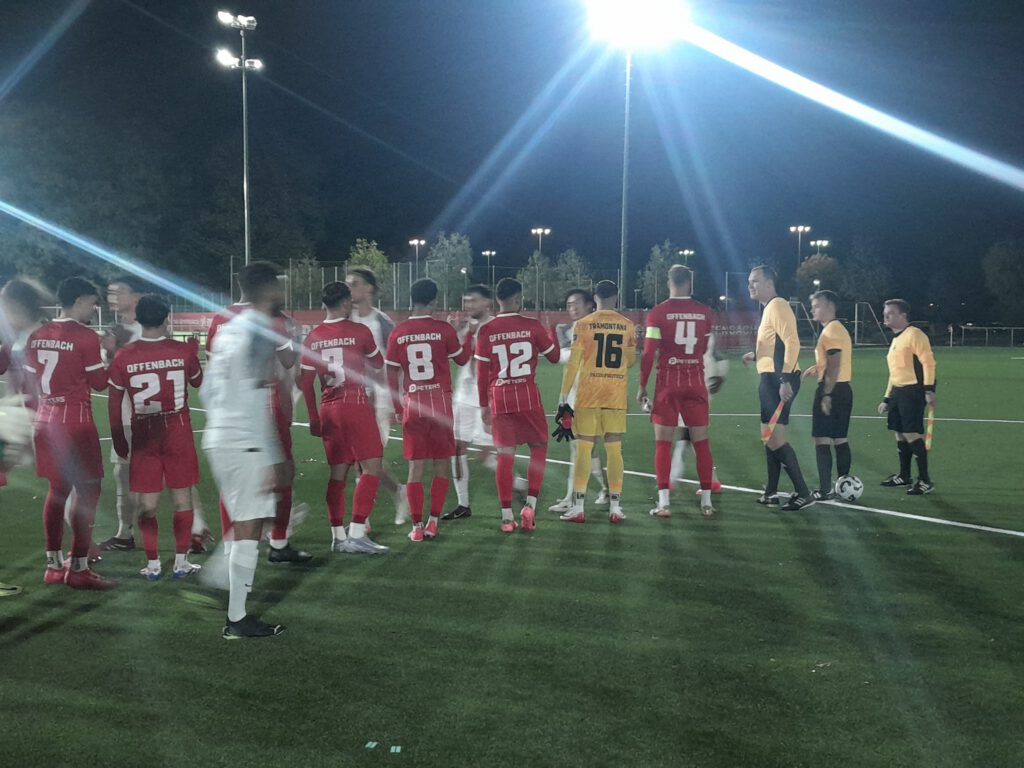 Dabei hatte das Team von Trainer Aaz-Dine Zarioh stark angefangen und war durch einen Konter des Japaners Shuto Ishino in Führung gegangen (12.). Grenzwertige Lichtverhältnisse begünstigten den Ausgleich der Offenbacher. Nach einem Eckball sah Kalbachs Torhüter Fabian Lanthaler den Ball zu spät, OFC-Kapitän Jens Mühlig traf zum 1:1 (31.). Nach dem Seitenwechsel verursachte Lanthaler einen unnötigen Foulelfmeter, den David Santoro zum 2:1 verwandelte (54.). Kalbachs Torjäger Achraf Gara Ali hatte Pech mit einem Pfostenschuss (64.). Nach dem 3:1 der Gastgeber durch Richard Mben Bata (71.) war die Partie entschieden. Santoro setzte mit seinem zweiten Tor den Schlusspunkt (77.).