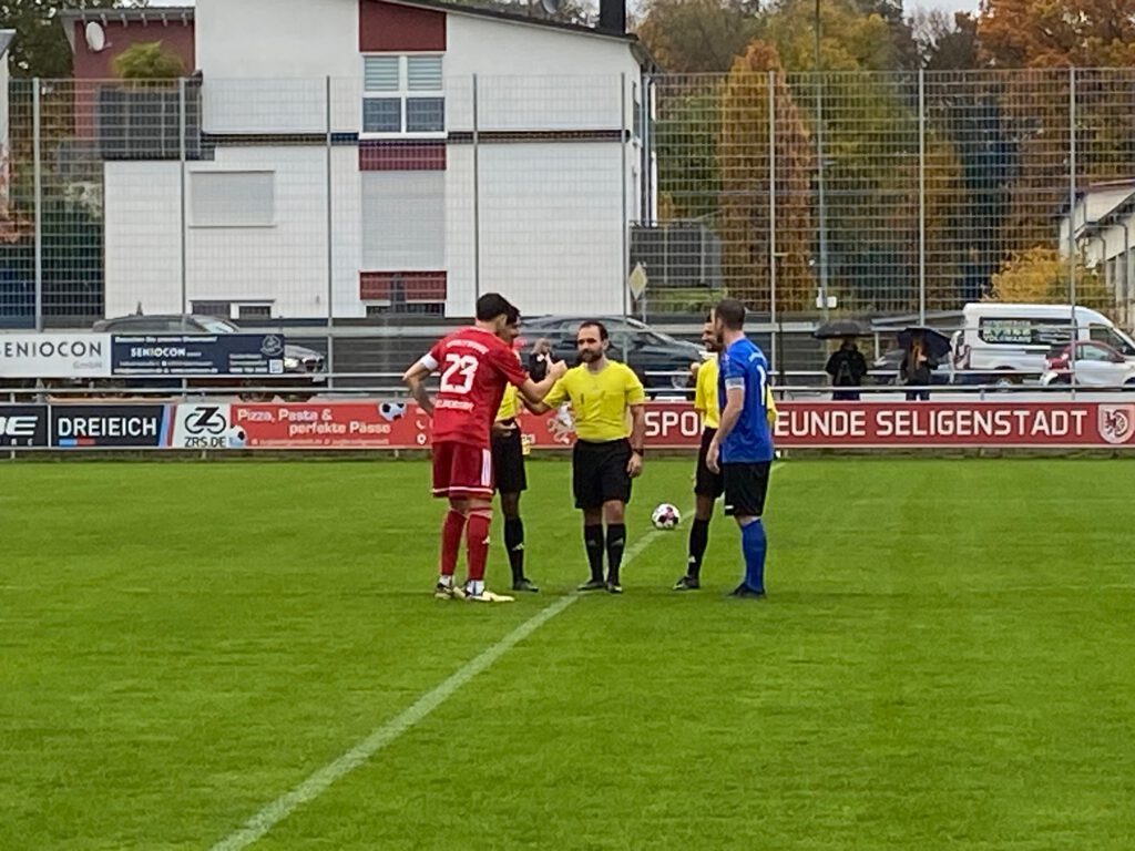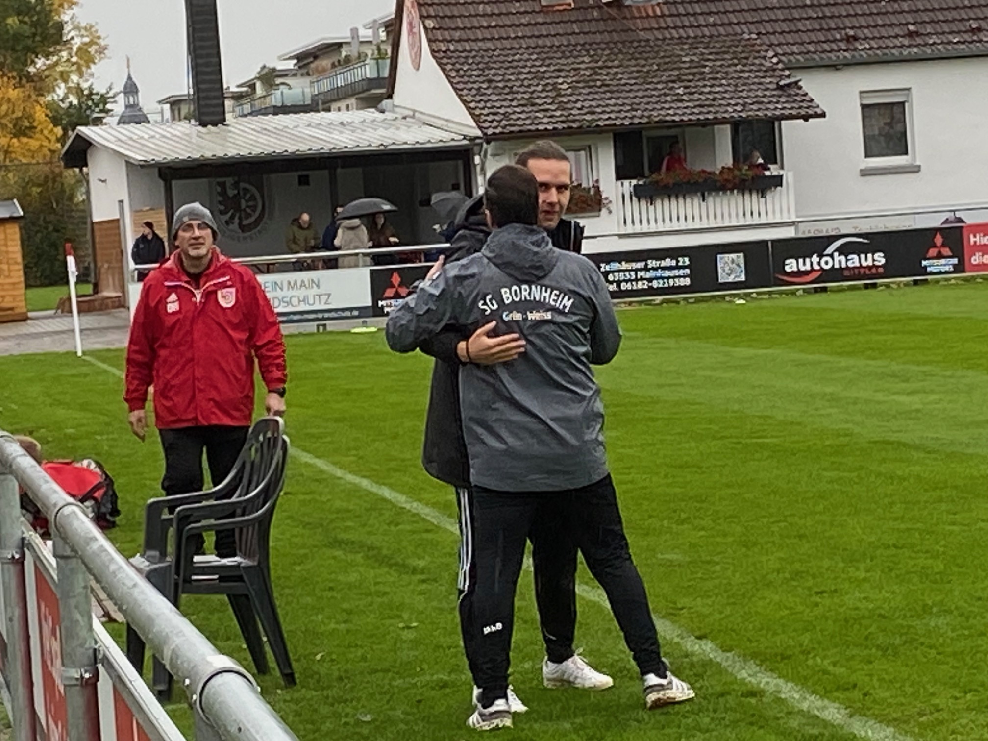 Bei Dauerregen empfingen die Sportfreunde Seligenstadt auf rutschigem Geläuf die SG Bornheim, und es entwickelte sich ein kampfbetontes und emotionales Spiel. In der ersten Halbzeit hatten die Gastgeber gegen eine gut verteidigende Bornheimer Mannschaft die besseren Aktionen und gingen in der 21.Minute verdient in Führung, nach einem Konter war Marvin Heinz, der diesmal auf der rechten Seite spielte, frei vor Torhüter Gianluca Colombo aufgetaucht und verwandelte sicher zur 1:0-Führung. Seligenstadt kam immer wieder über die Außenpositionen zu gefährlichen Situationen, doch drei gefährliche Eingaben fanden in der Mitte keinen Abnehmer. Das Trainerteam um Taner Yalcin und Tim Fließ stellte nach 25 Minuten um auf ein 5-4-1-System und die Mannschaft bekam danach mehr Zugriff, doch in der Offensive war in der ersten Hälfte von Bornheim nichts zu sehen.