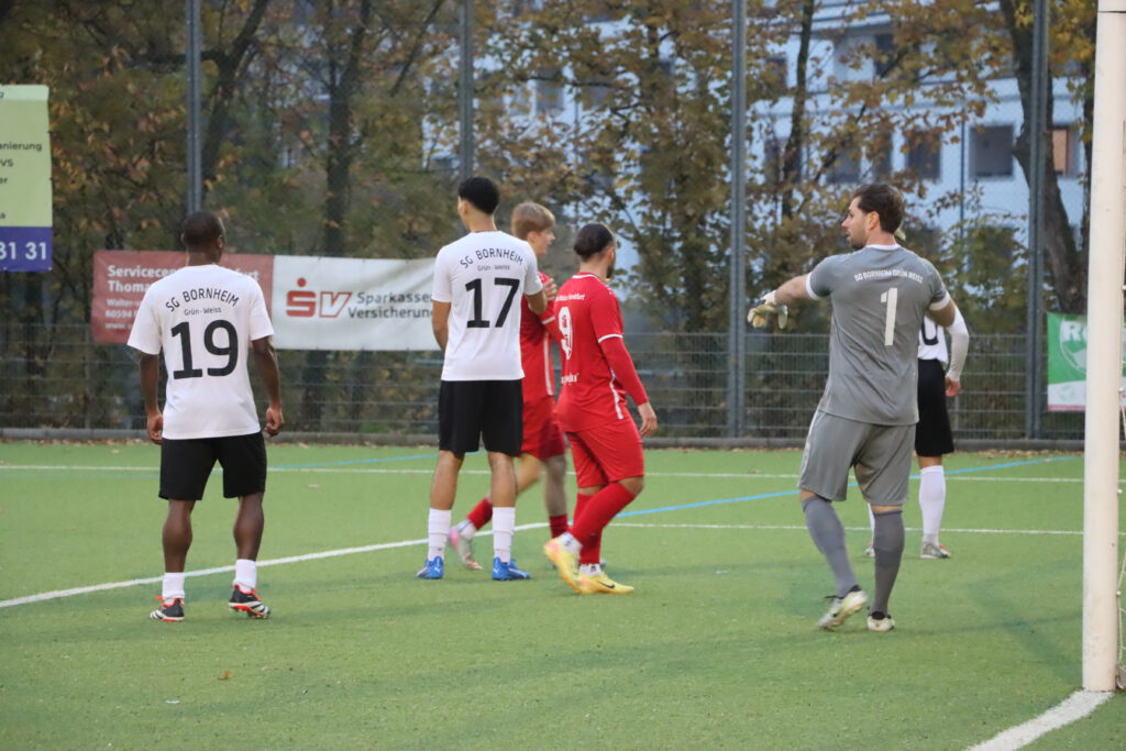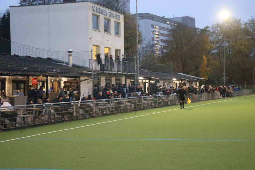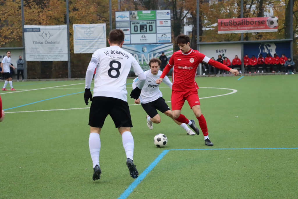 Im dritten Anlauf konnte RW Frankfurt die Tabellenführung in der Verbandsliga Süd übernehmen und am letzten Spieltag der Vorrunde damit die Herbstmeisterschaft erringen. Im mit Spannung erwarteten Derby bei der SG Bornheim konnte vor einer großen Zuschauerkulisse ein 2:0-Sieg gefeiert werden. Wer weiß, wie das Spiel gelaufen wäre, wenn Lukas Knell für die Gastgeber in der Anfangsphase nach einer Flanke das 1:0 erzielt hätte, sein Kopfball strich aber knapp über das Tor. Doch das Tor schossen die Gäste, in der 26.Minute wurde ein langer Ball hinter die Kette der Bornheimer Abwehr gespielt, Christian Idahosa nahm den Ball an und erzielte die 1:0-Halbzeitführung für die Roten. Bornheims Trainer Taner Yalcin. „bis zum 1:0 waren wir die spielerisch bessere Mannschaft und hatten die besseren Abschlussmöglichkeiten, da fehlte aber etwas die Entschlossenheit.“ RW Trainer Ibo Cigdem: „es hätte nach der Großchance für Knell auch anders laufen können, danach haben wir aber sehr gut gespielt und das Spiel kontrolliert, Alex (Alexander Koziolek, die Red.) konnte zwei Chancen nicht verwerten.“
