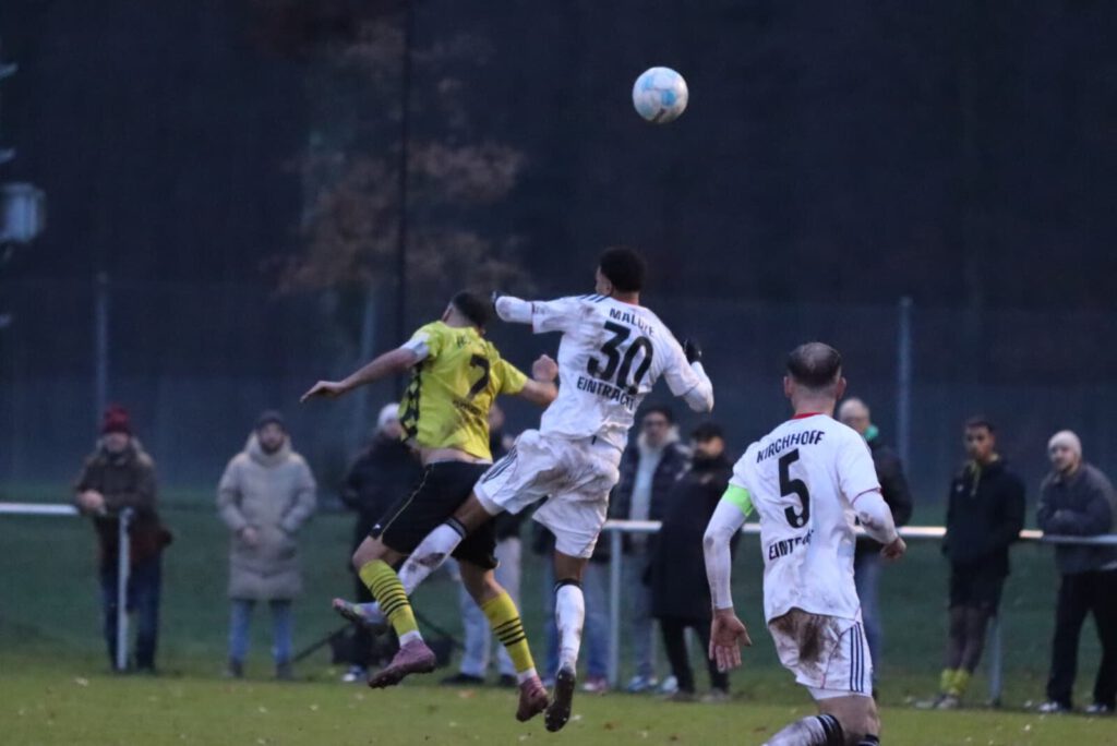 Die weiße Spielkleidung war nach diesem Kampfspiel im Regen natürlich schmutzig, zumal die Gäste nach der Roten Karte gegen Collin Owusu Etse (33.) wegen Notbremse mit einem Spieler weniger auskommen mussten. Das Tor des Tages erzielte dennoch Noah Fenyö auf Zuspiel von Lukas Sonnenwald für die Adlerträger (41.). Der 19-jährige traf gegen HSC-Tormann Armend Brao zum 1:0. Zuvor hatte der Hanauer SC, der mit Amiri, Marjane, Emir Sejdovic und Adam Loune gleich vier ehemalige Eintrachtler in der Startelf hatte, mit Marjane den Pfosten getroffen.