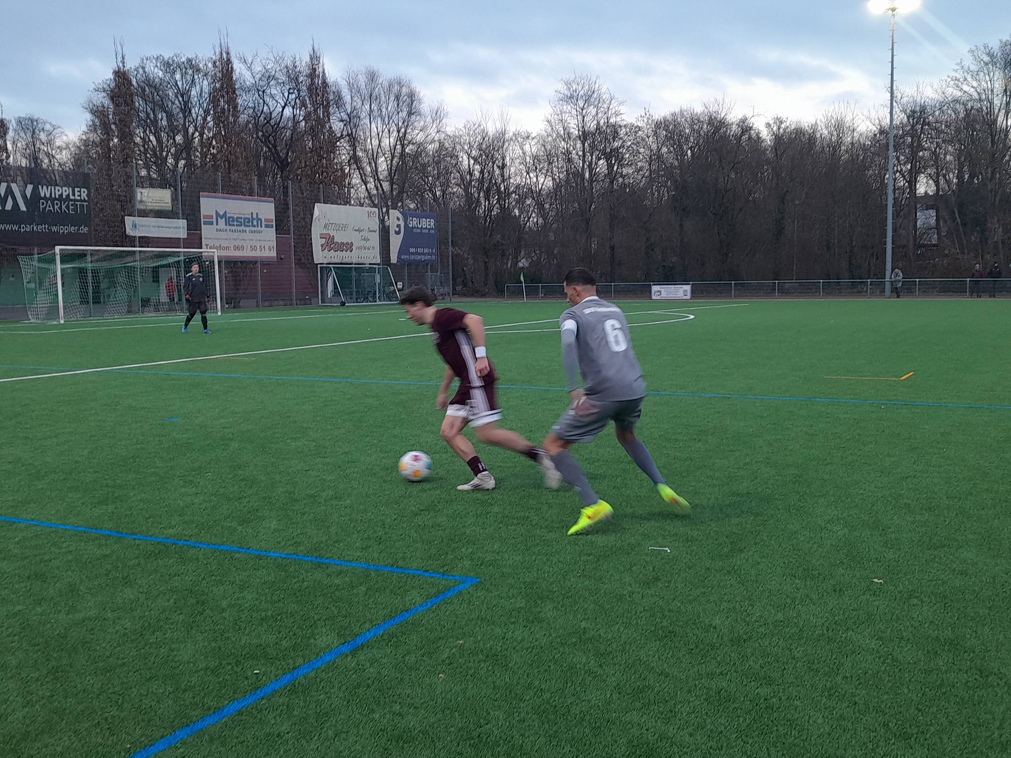 Nach fünf Wochen standen die Brühlwiesen-Fußballer wieder auf dem Kunstrasenplatz und trafen auf einen Gegner mit Niveau. Von Beginn an entwickelte sich ein intensives Spiel. Es dauerte 17 Minuten, bis Giuliano Amante einen Torschuss über den Kasten von VfR-Torhüter Jan Hellwig setzte. Die Bockenheimer, nur sechs Punkte mit einem Nachholspiel in der Hinterhand hinter dem Relegationsplatz stehend, spielten gut mit. Dann aber trafen zwei Spieler, die vor der Saison aus dem Hochtaunus kamen und bisher nicht so viel Protagonismus hatten. Mittelstürmer Luca Fortunato traf auf Zuspiel von Amante ins rechte Eck – 1:0 (18.). Dann war es Rechtsverteidiger Adam Abbass, der nach einem Pass von Antonie Willeführ von der rechten Seite den Innenpfosten traf, von dort prallte der Ball zum 2:0 ins Netz (25.). 86 Zuschauer davon ein guter Teil an Gästeanhängern, sahen aber weiter eine engagierte Bockenheimer Mannschaft.